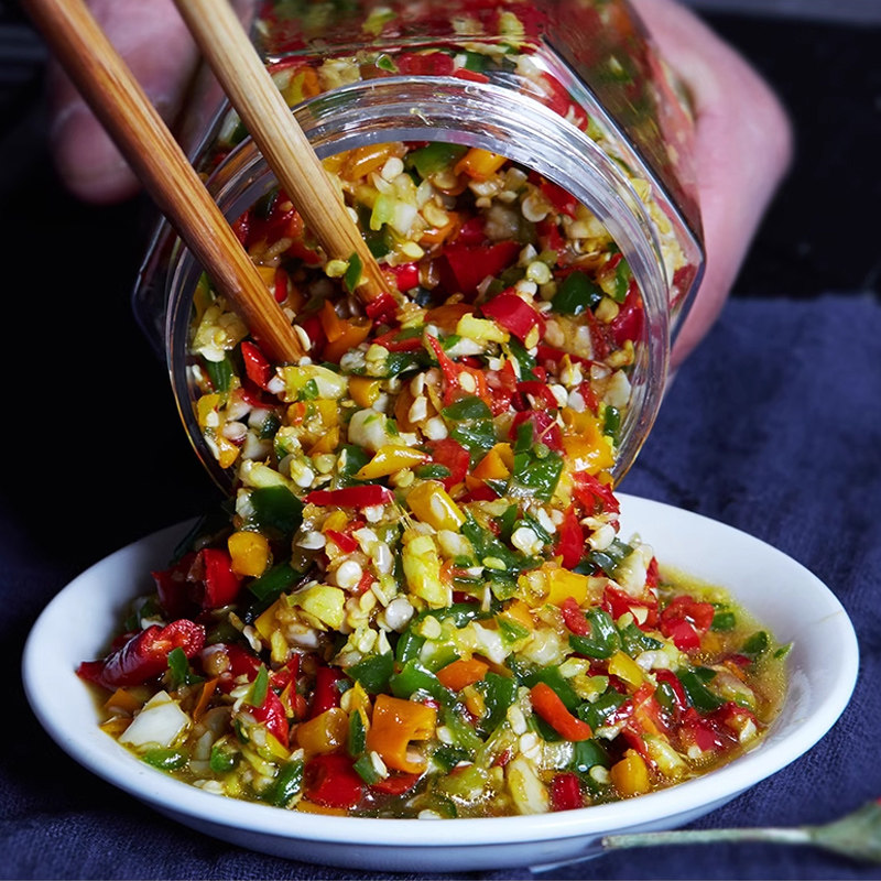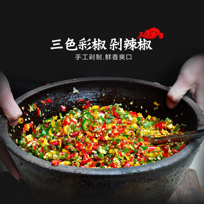 湖南特产农家彩椒酱蒜蓉辣椒酱剁椒酱拌饭四川辣酱特辣下饭菜瓶装