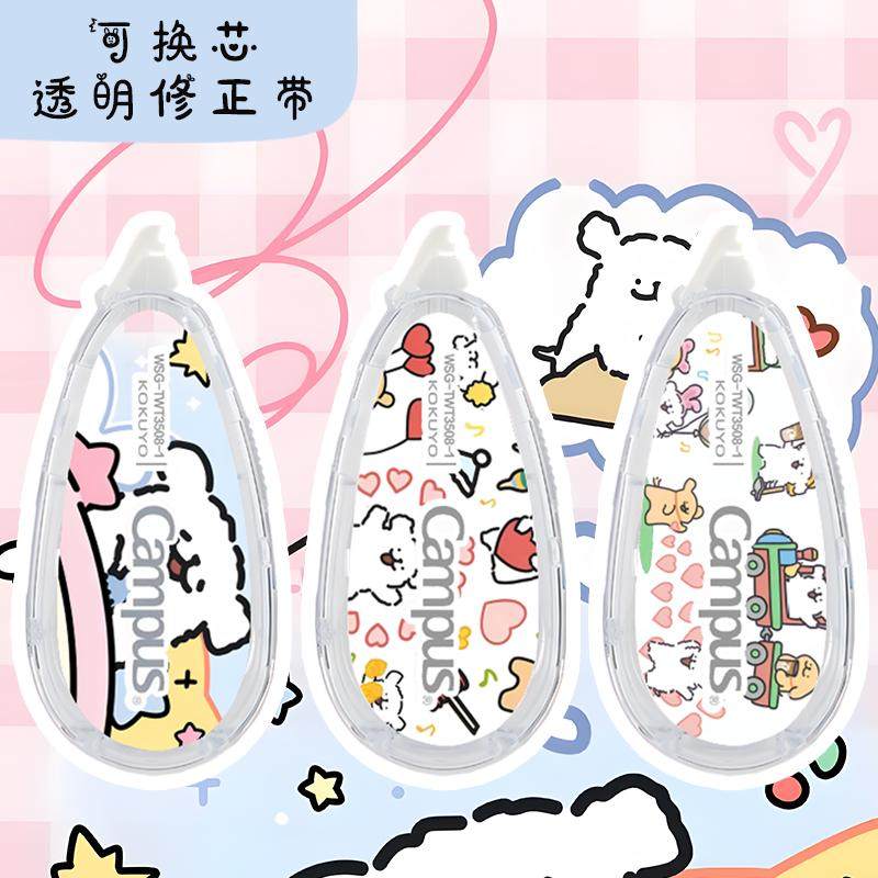 日本进口国誉线条小狗修正带原纸色大容量可替换芯高颜值DIY款