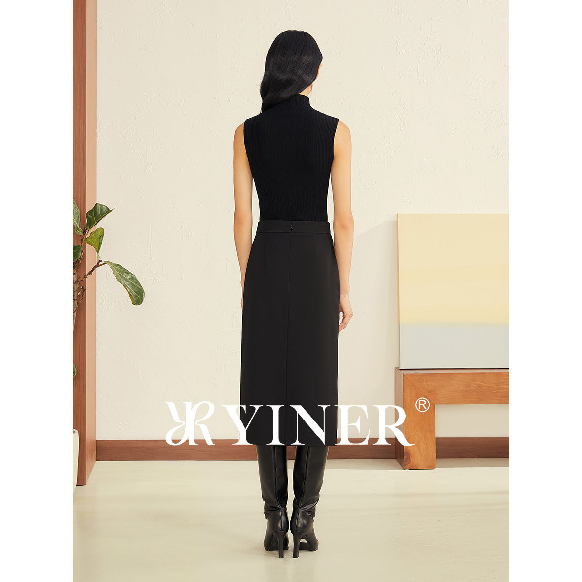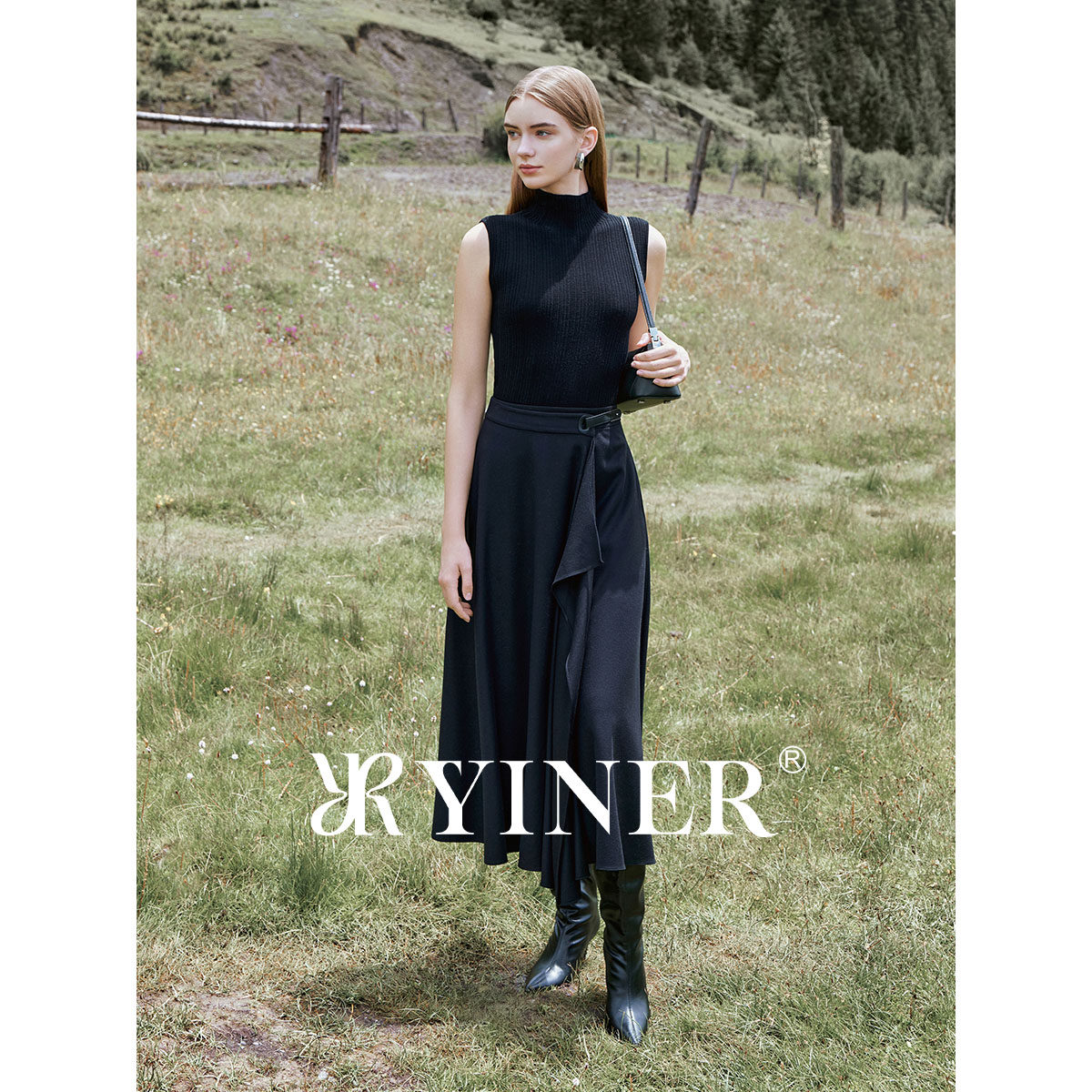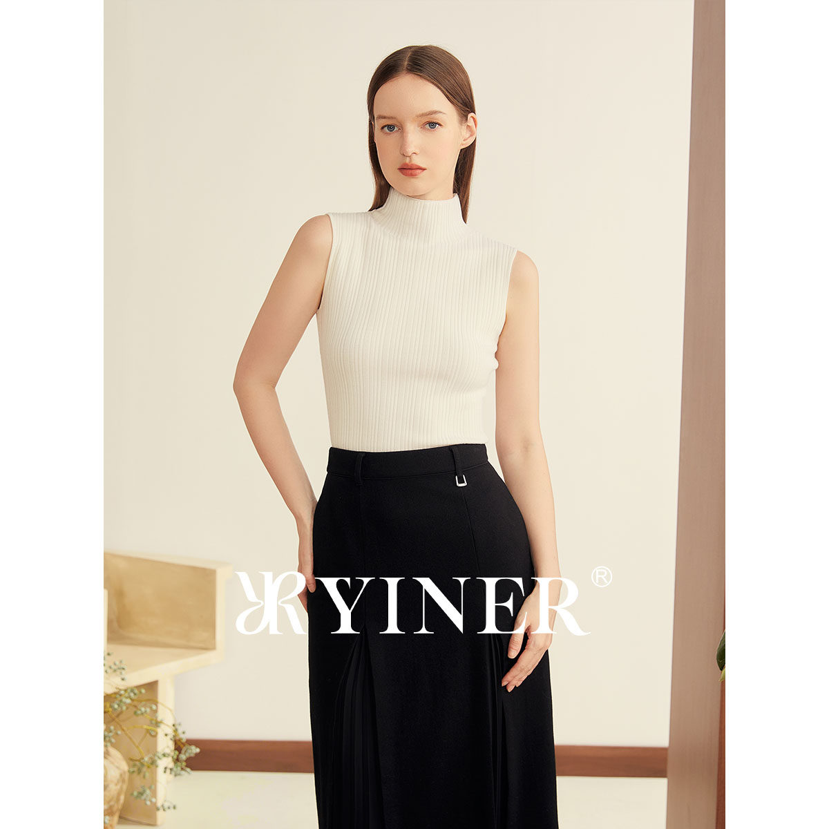【刘涛同款】YINER音儿2025冬季新款美丽诺羊毛混纺半高领针织衫