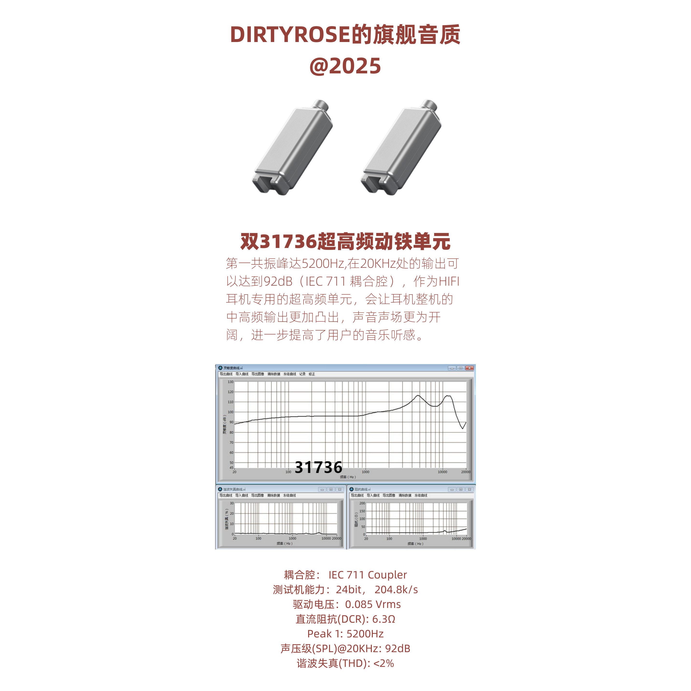 DIRTYROSE 两铁一圈 轻量稳定木耳机 HIFI发烧级舞台监听耳返式
