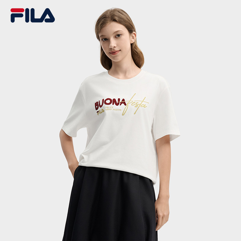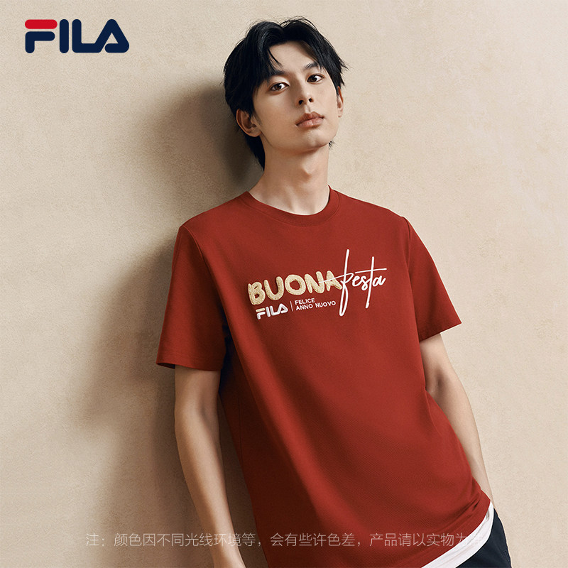 FILA马上起飞斐乐情侣短袖上衣男2026春新年红色本命年半袖T恤女