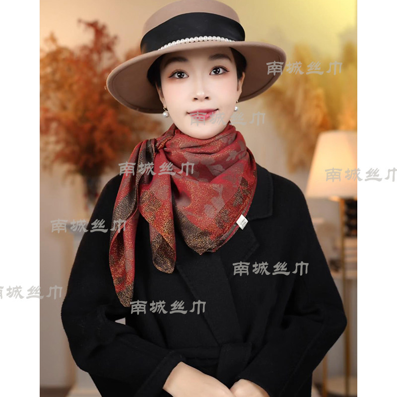 【流光晶】高档金丝纱巾中国红丝毛方巾围巾披肩送礼100*100cm