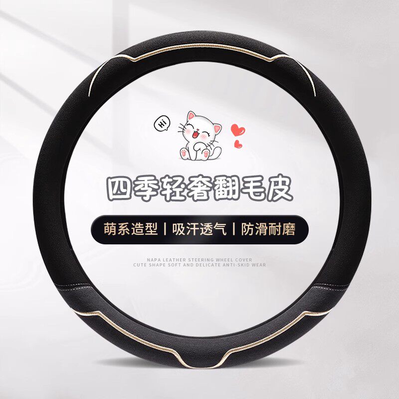 方向盘套秋冬通用新款汽车内饰女生可爱翻毛皮汽车把套毛绒短绒