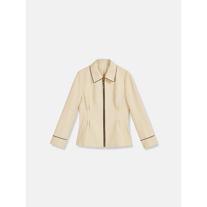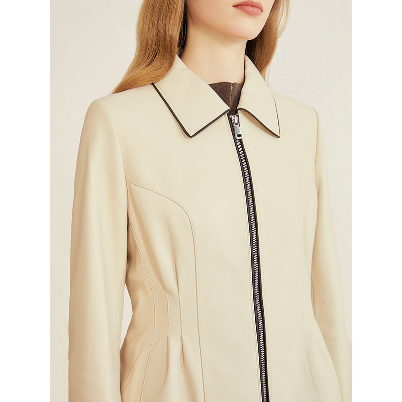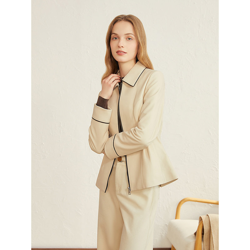 YINER音儿专选2025秋季新款法式撞色领边拉链绵羊真皮皮衣夹克