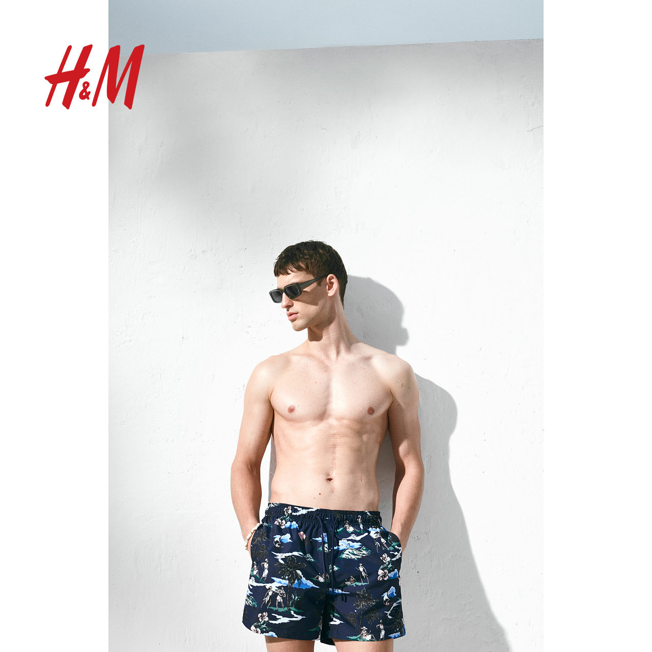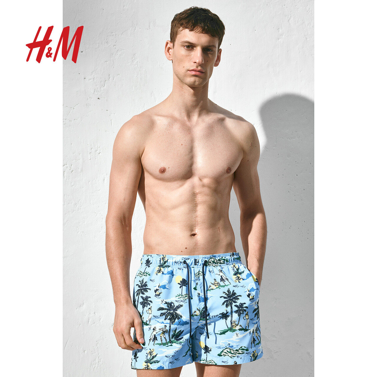 HM春季男装游泳短裤春季图案泳裤1267379