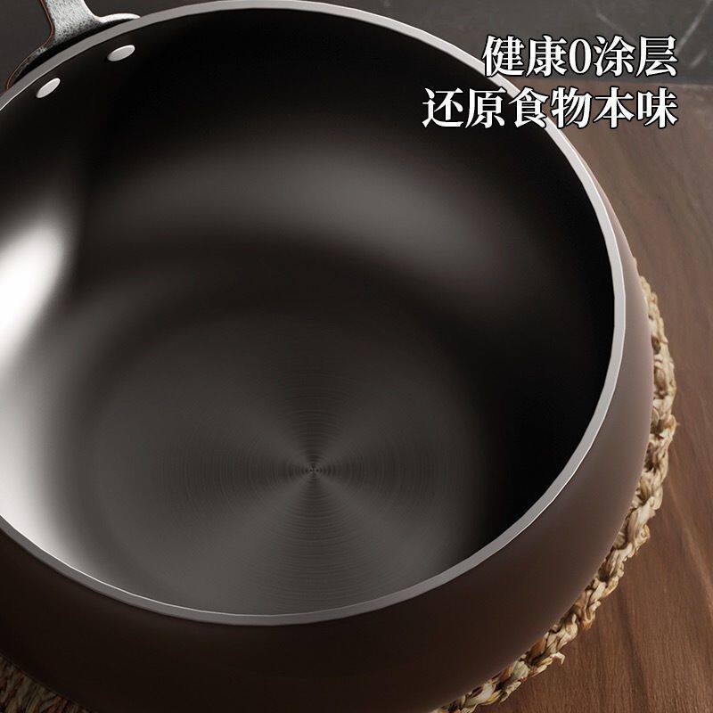 康巴赫尊享版真钛0涂层炒锅无涂层家用不粘锅燃气灶不锈钢炒菜锅