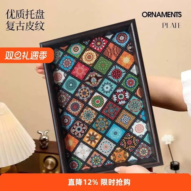 波西米亚风摆件托盘玄关客厅创意置物盘珠宝首饰零食家用收纳盘