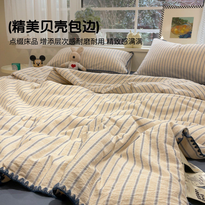 A类全棉双层纱夏凉被四件套空调被可机洗薄款被子夏季夏被三件套4