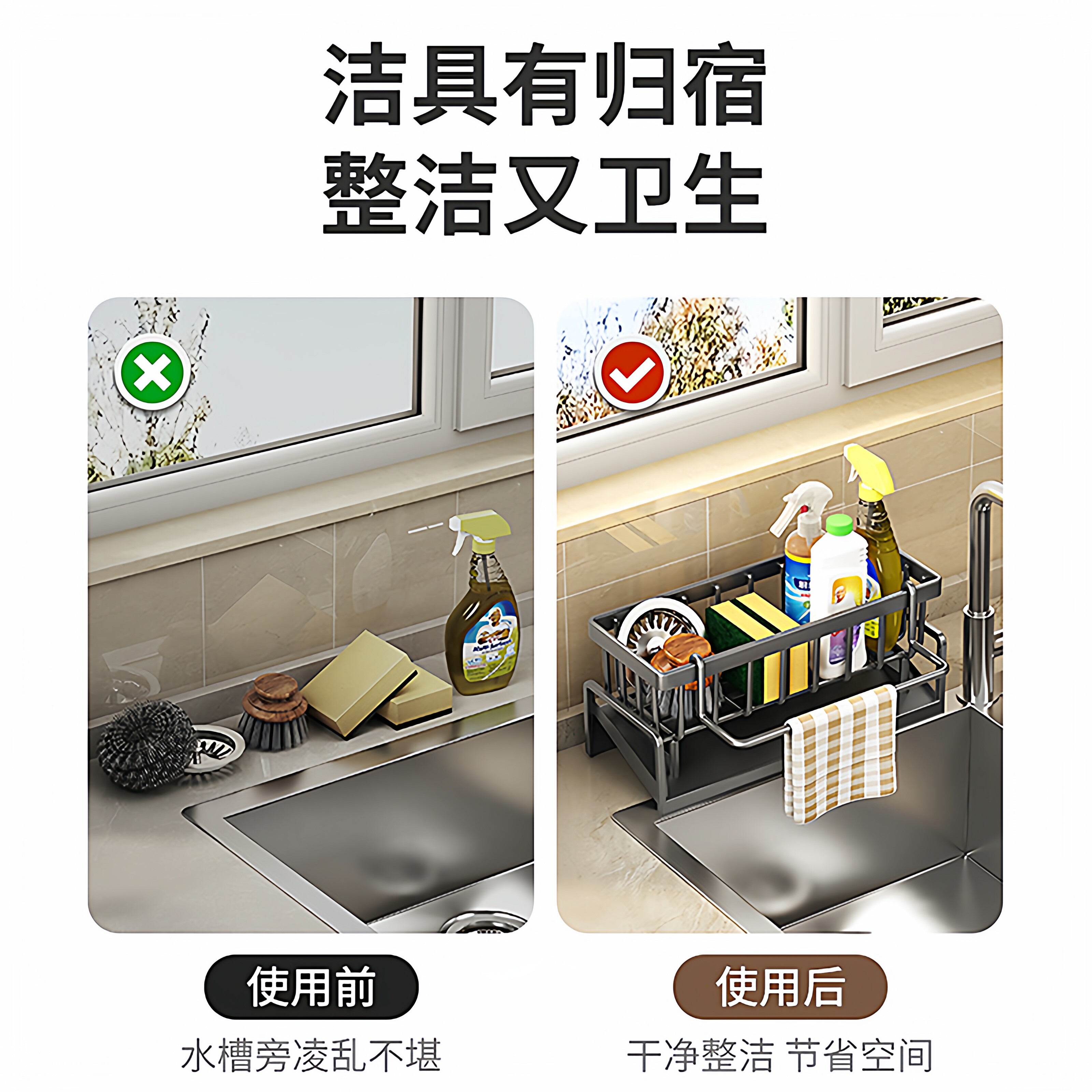 304不锈钢水龙头置物架厨房用品水池水槽收纳洗碗海绵抹布沥水架