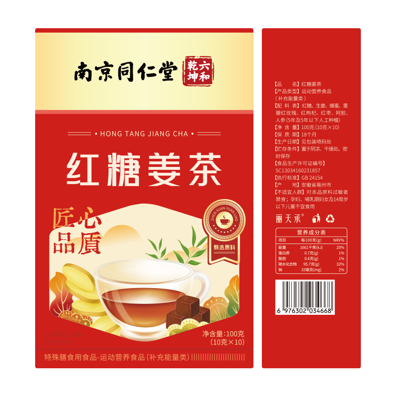 丽天承南京同仁堂红糖姜茶大姨妈寒红糖水生姜月经速溶宫冲饮女性