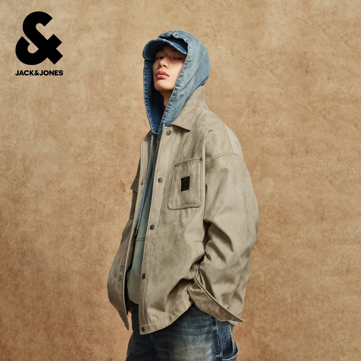 杰克琼斯男装冬季棉服宽松翻领挺阔版型工装口袋字母刺绣百搭外套