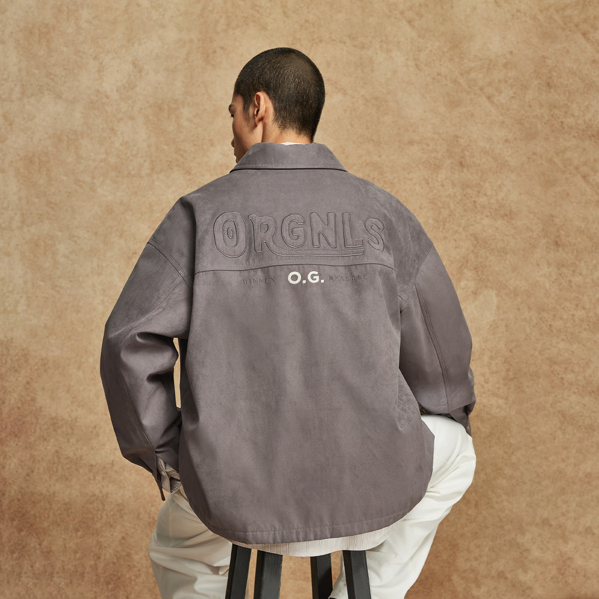略宽松版型;翻领领型;衣身肌理感挺阔面料