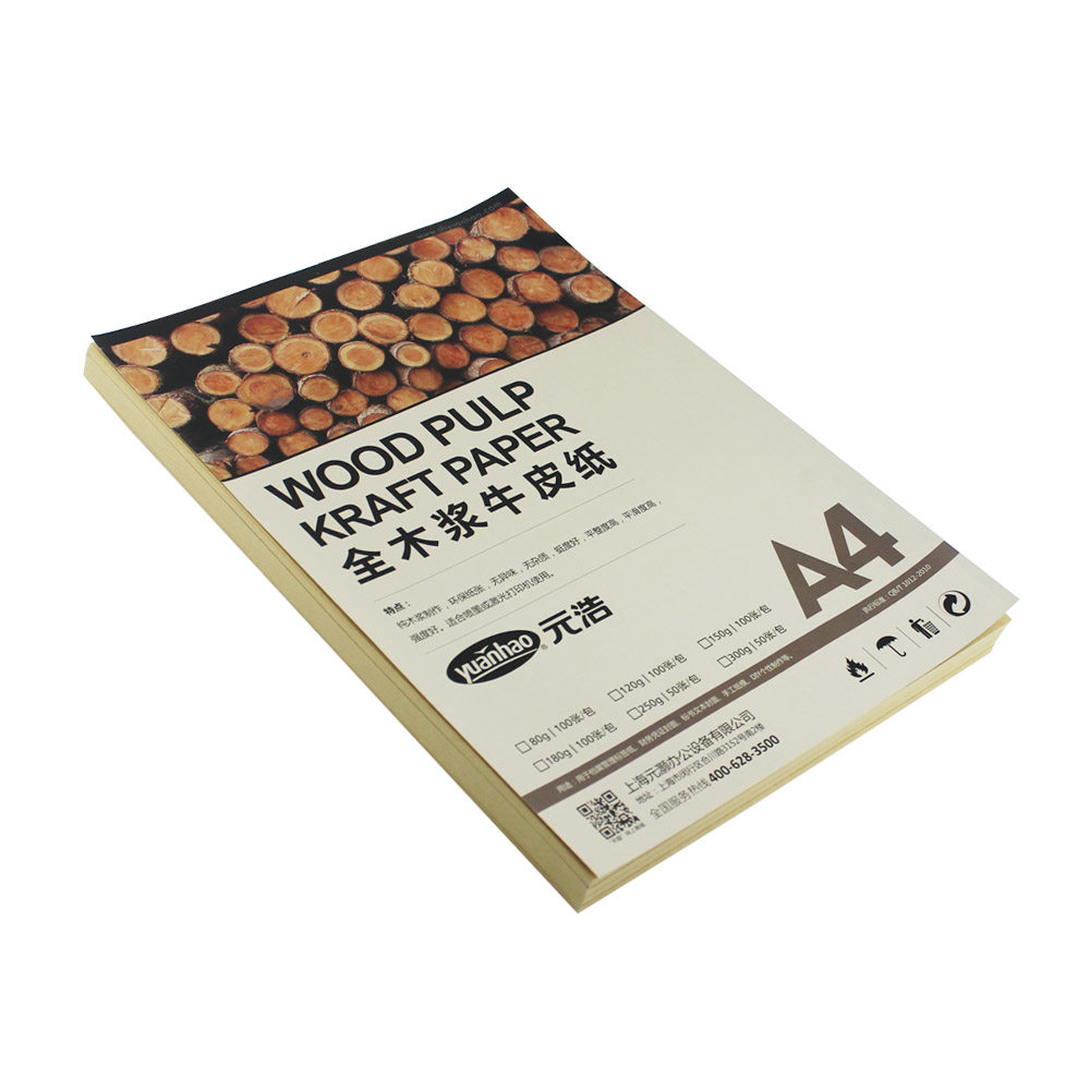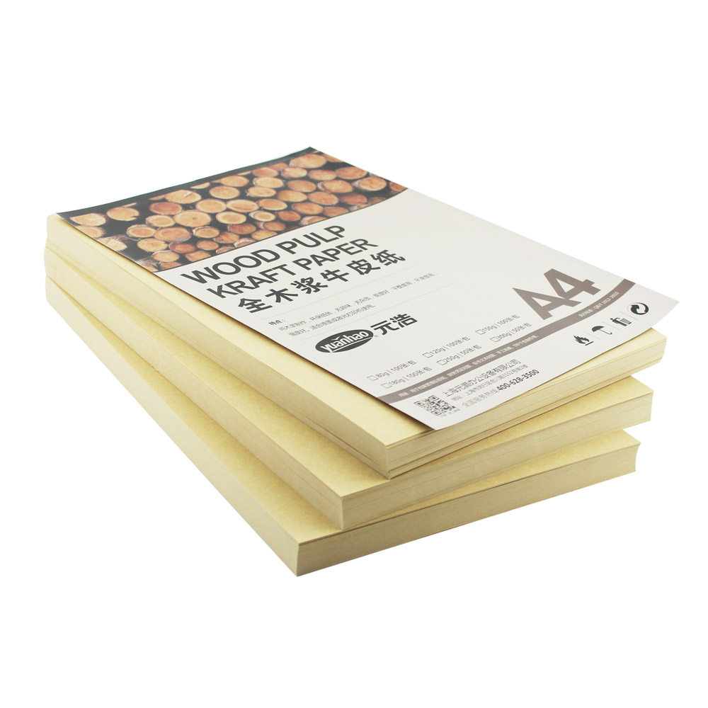元浩油画棒专用纸A4牛皮纸封面纸凭证纸150g办公木浆打印纸包装纸黄皮纸手工纸