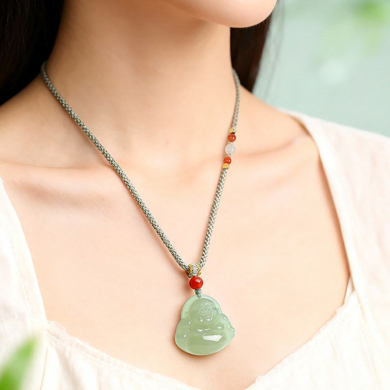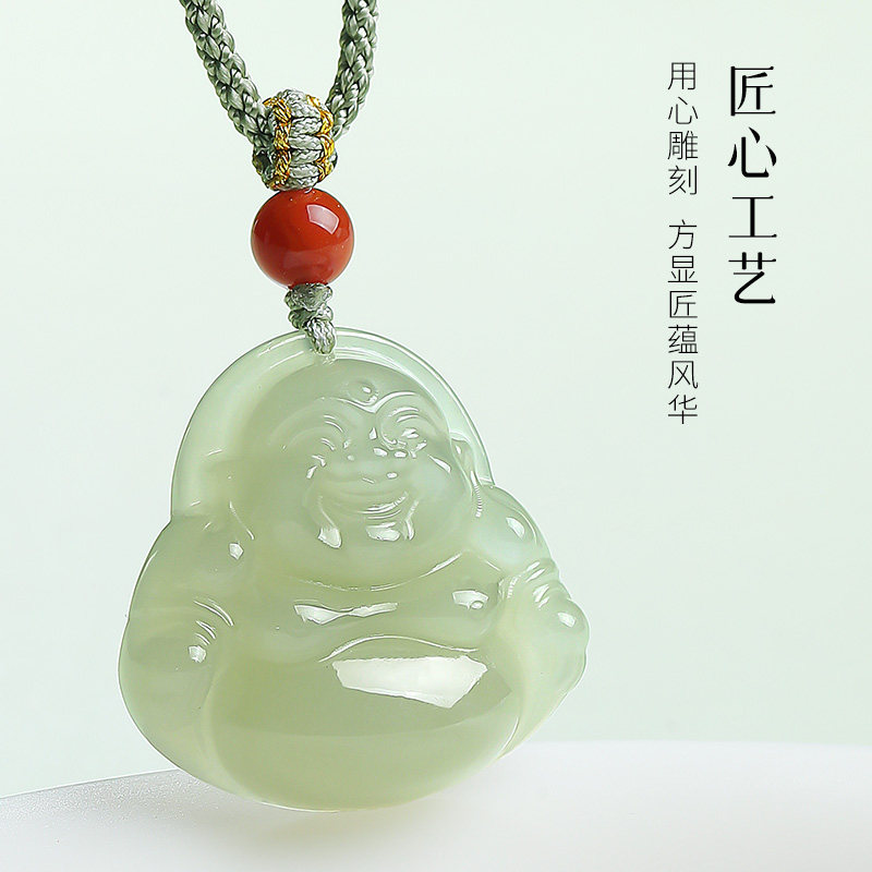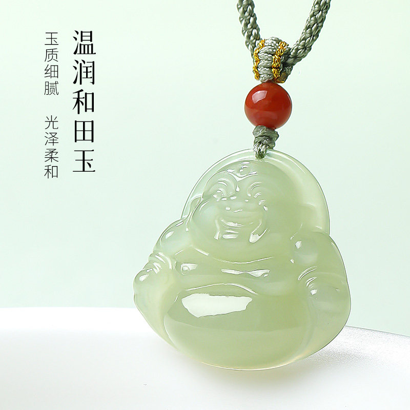 印象眸和田玉佛公吊坠女款大肚弥勒佛玉坠晴水玉石项链生日礼物