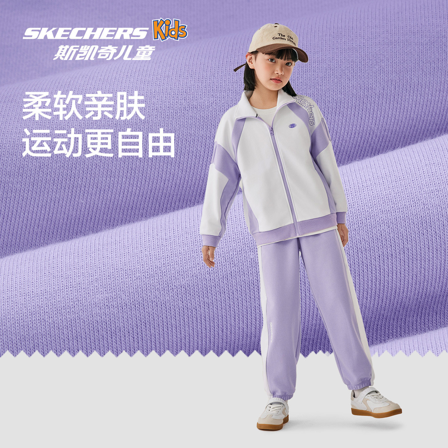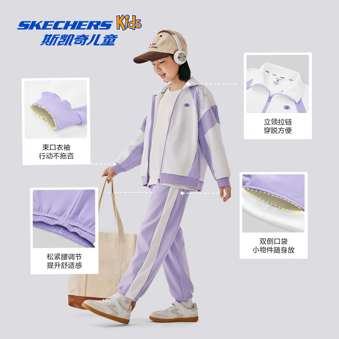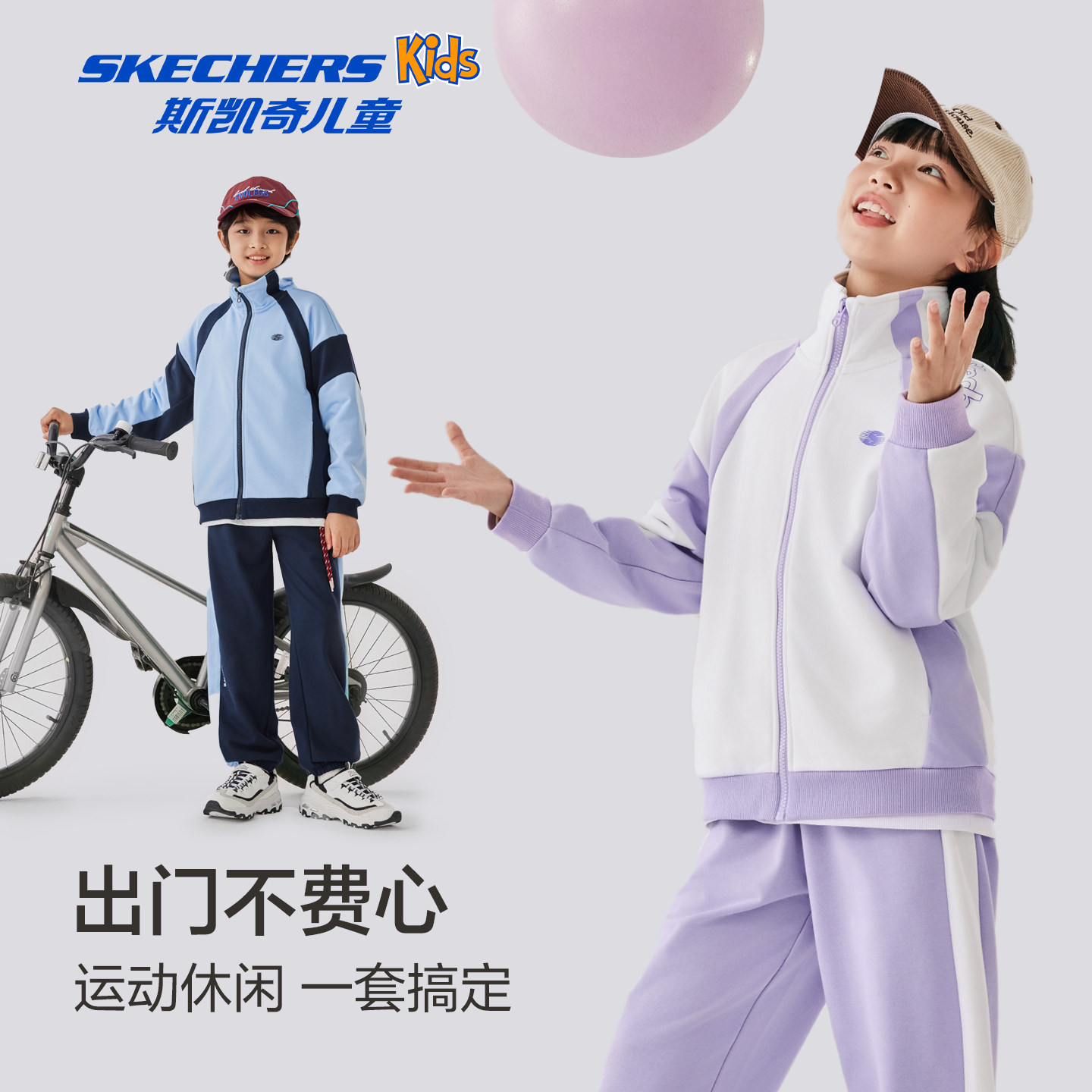 Skechers斯凯奇儿童时尚撞色外套长裤春秋校园男女童休闲运动套装