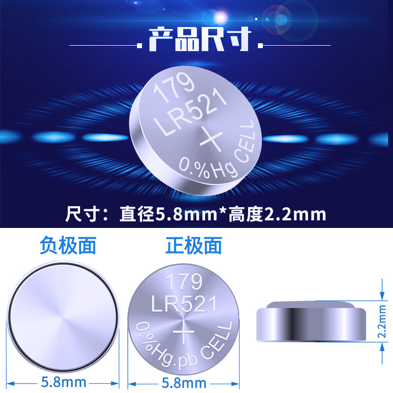原装LR521纽扣电池AG0 SR521SW钮扣圆形LR521H适用手表电子卡西欧379 LR63石英浪琴玩具通用钮扣1.5V