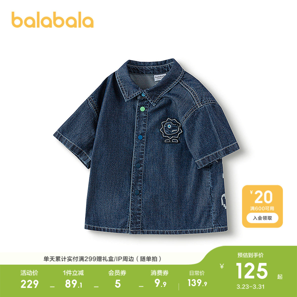 巴拉巴拉童装儿童牛仔衬衫男童上衣凉感2026夏季休闲时尚百搭洋气