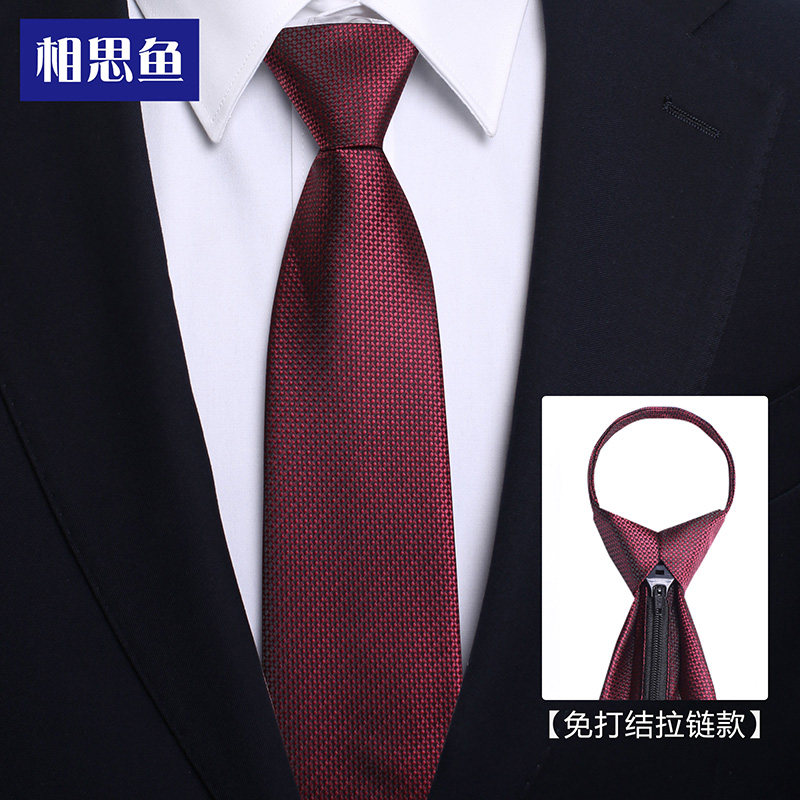 相思鱼红色结婚领带男士拉链新郎高端西装商务懒人免打潮手打商务