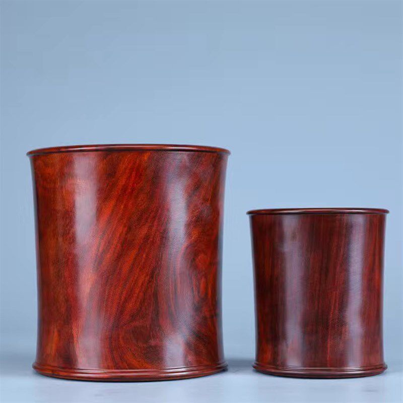 小叶紫檀笔筒复古毛笔筒办公桌中式红木雕刻书房礼品