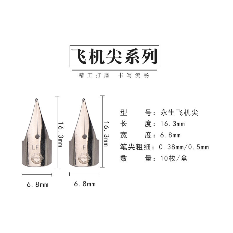 永生钢笔尖EF/F/美工尖飞机尖大明尖依人烂笔头钢笔通用0.38/0.5/1.0十只送钢笔