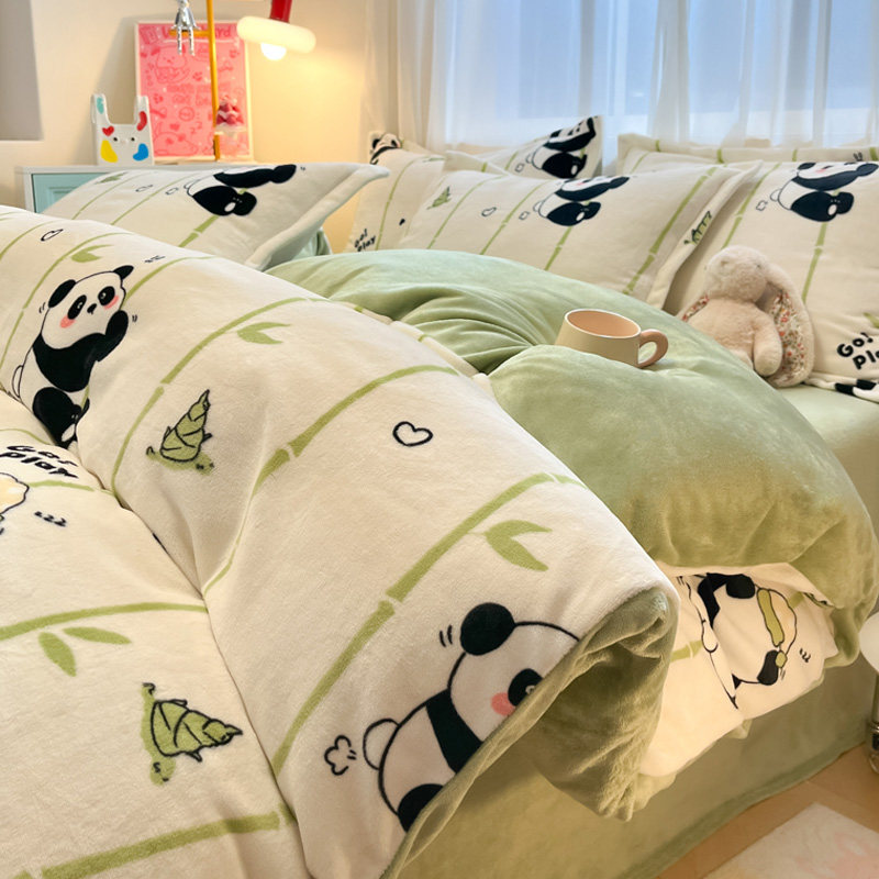 秋冬季加厚四件套牛奶绒被套床单双面加绒被罩床笠学生宿舍三件套