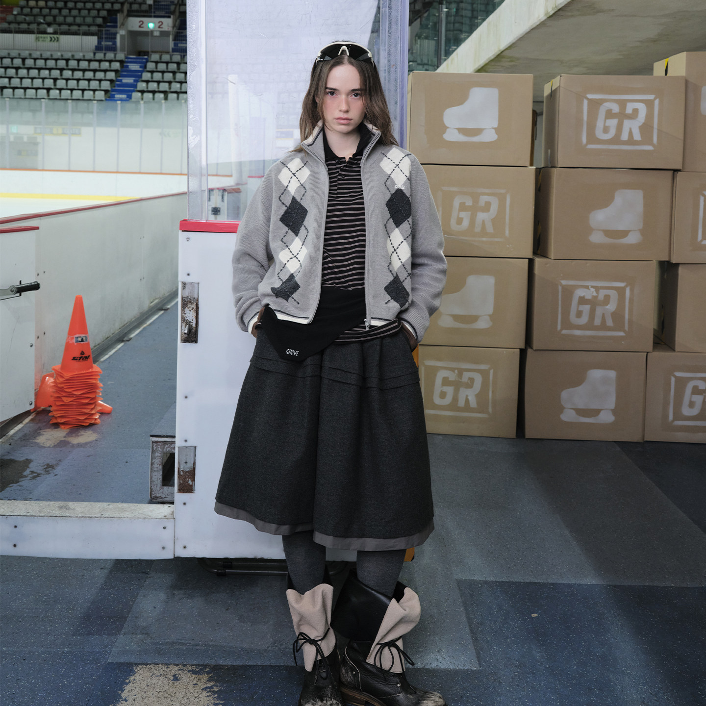 GROVE官方旗舰店 2025WT冬季款梭织中长裙撞色女半裙 GCW5SK05