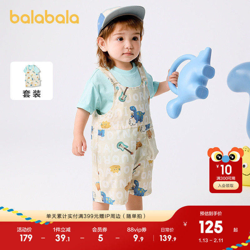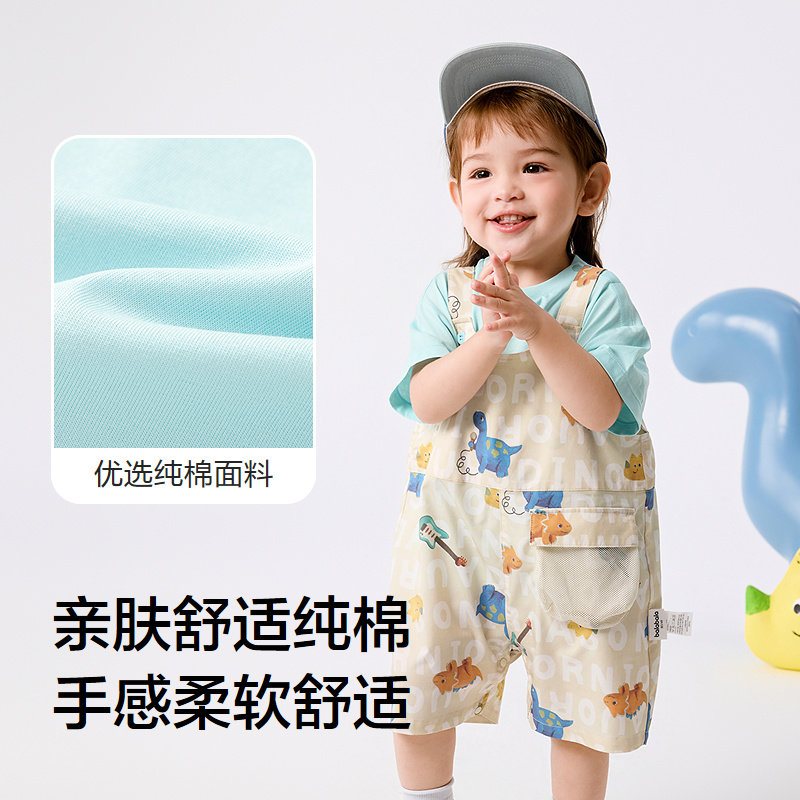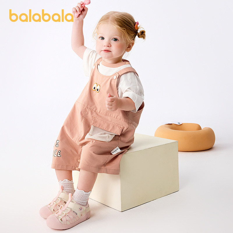 巴拉巴拉宝宝短袖套装男女童夏装洋气背带裤两件套2025新款时髦潮