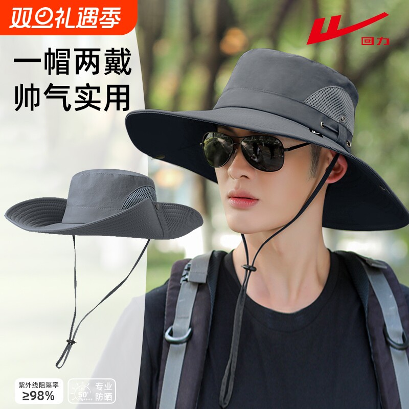 回力登山帽渔夫帽防紫外线帽子男女户外遮阳帽防晒帽大帽檐大檐