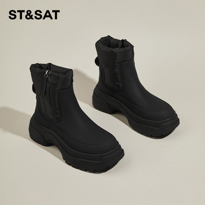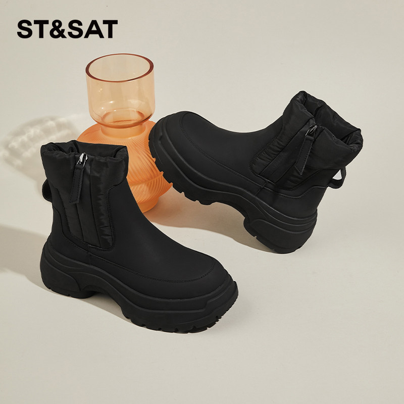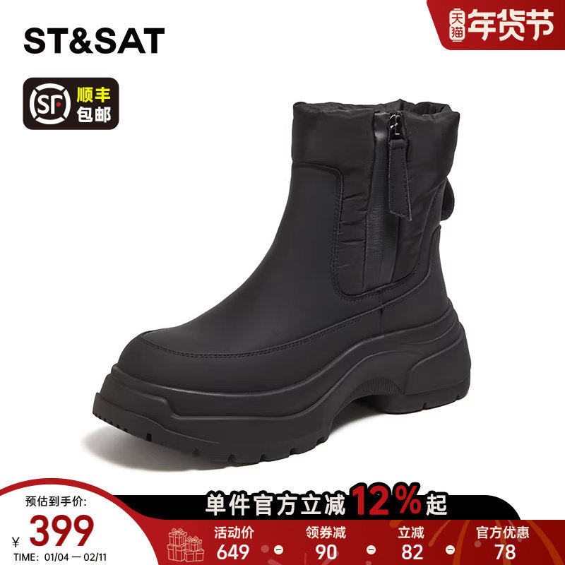 星期六加绒马丁靴女2025新款冬季加厚保暖毛毛棉鞋厚底黑色雪地靴