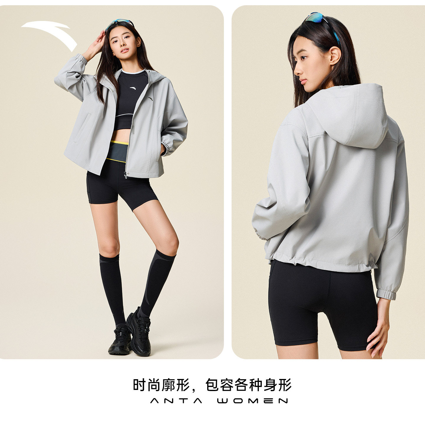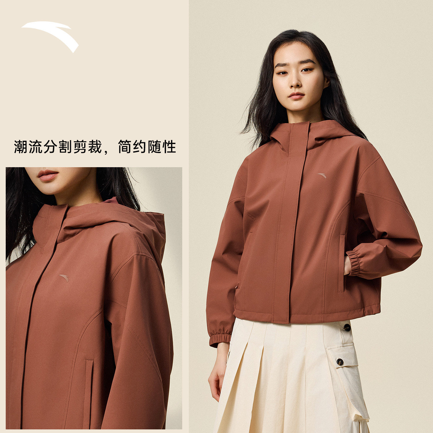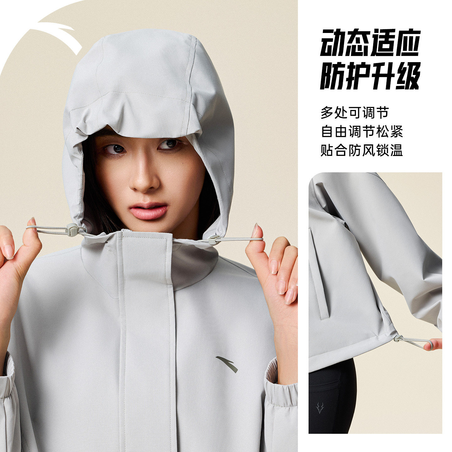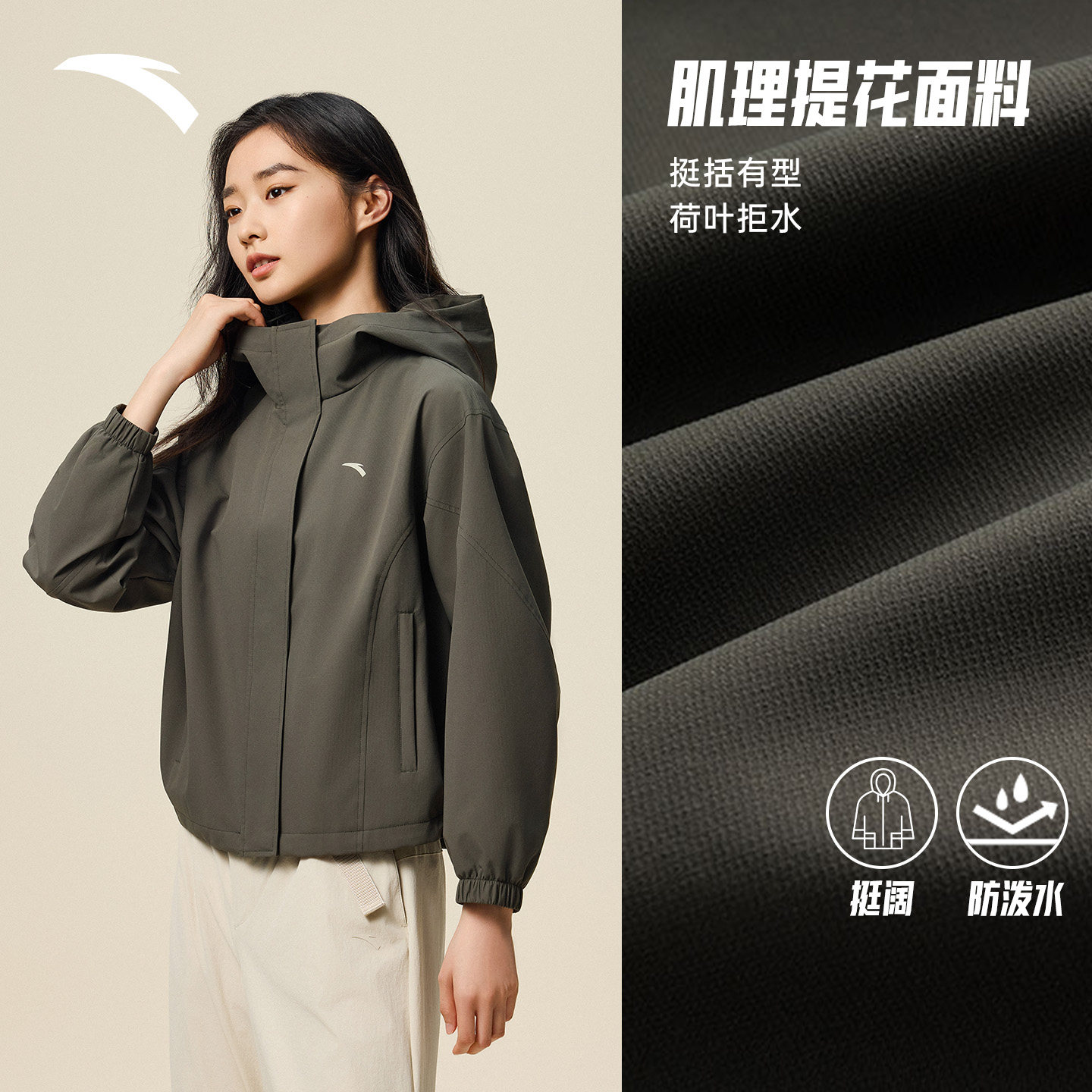 安踏防泼水外套丨户外防风梭织夹克女冬季休闲宽松运动上衣软壳衣