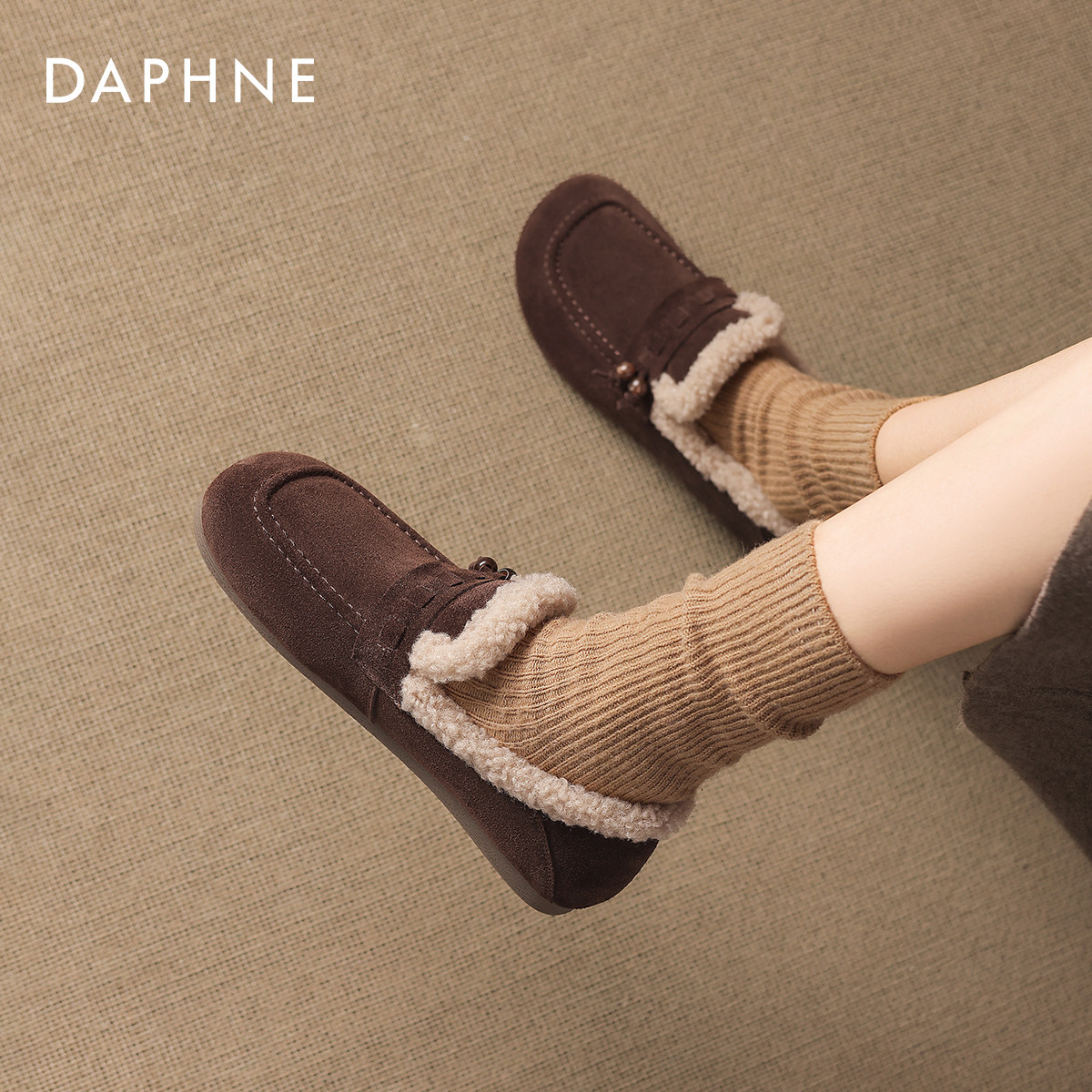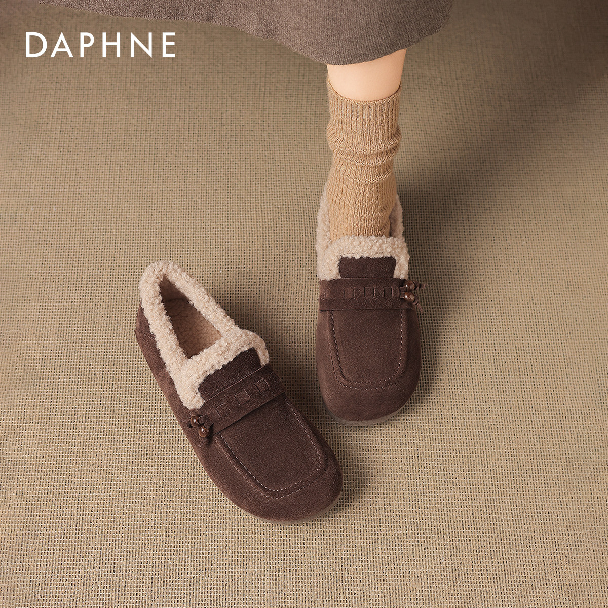 达芙妮加绒乐福鞋女2026新款冬季棉鞋雪地靴豆豆鞋勃肯鞋毛绒单鞋