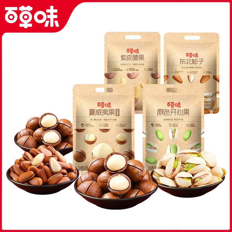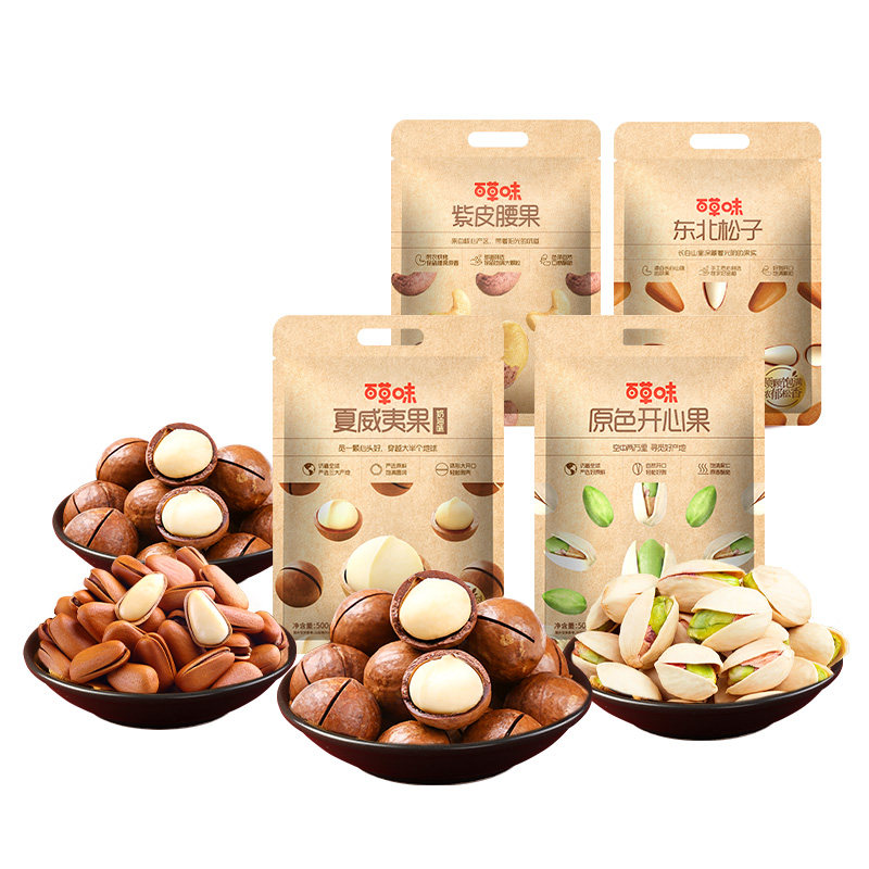 夜伴小卤百草味3袋装坚果组合松子夏威夷果开心果腰果健康坚果