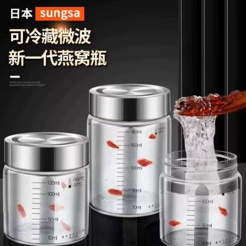 日本高硼硅玻璃燕窝分装瓶食品级耐高温可蒸煮保鲜专用炖杯密封罐