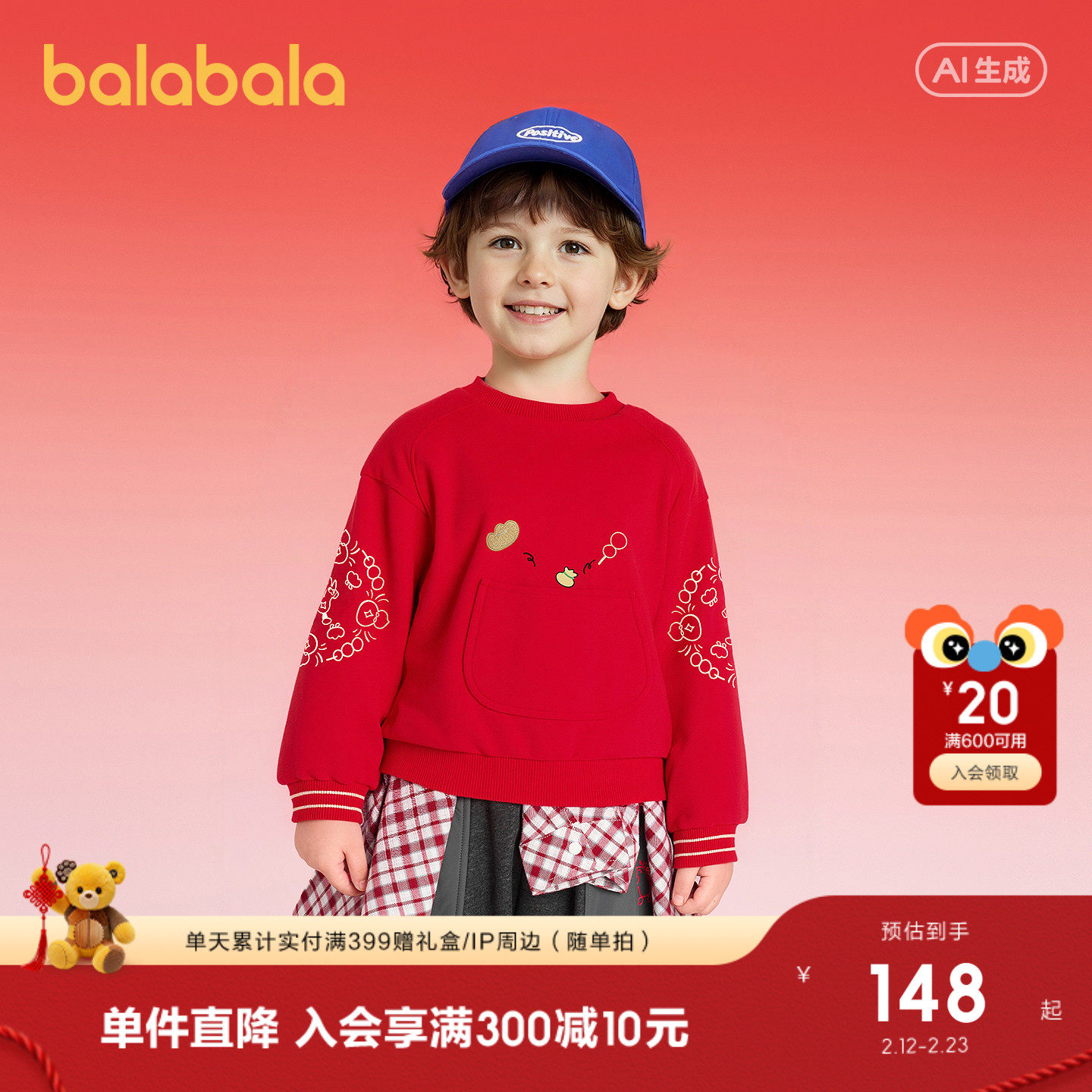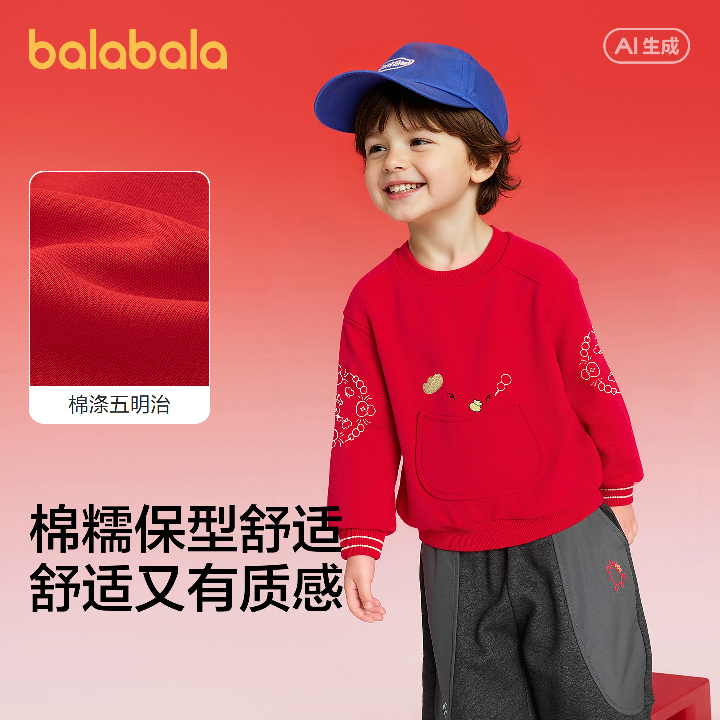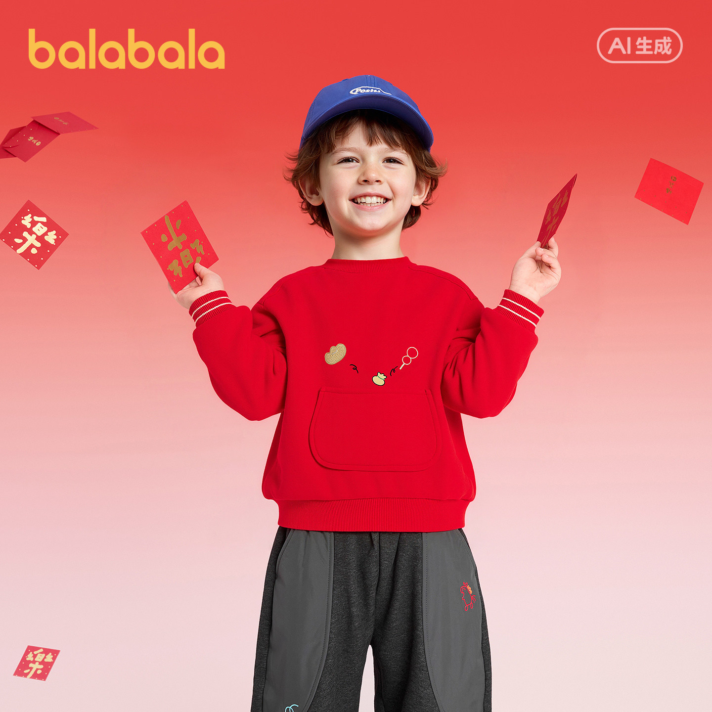 【商场同款】巴拉巴拉童装儿童卫衣男童2026新款春秋卡红色拜年服