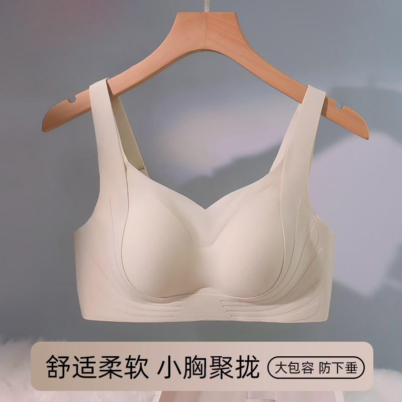 无痕内衣女士大胸显小胸聚拢上托3D软防下垂美背文胸罩收副乳提拉