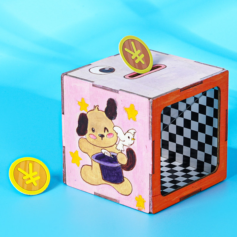 魔术箱木 儿童木制DIY科技小制作小学生小发明存钱罐益智科学实验
