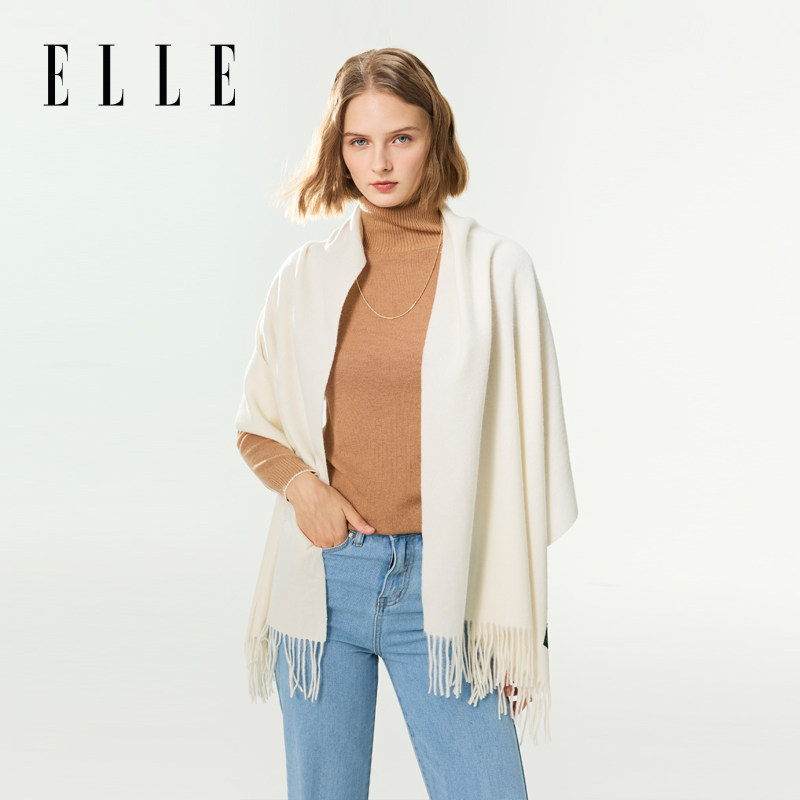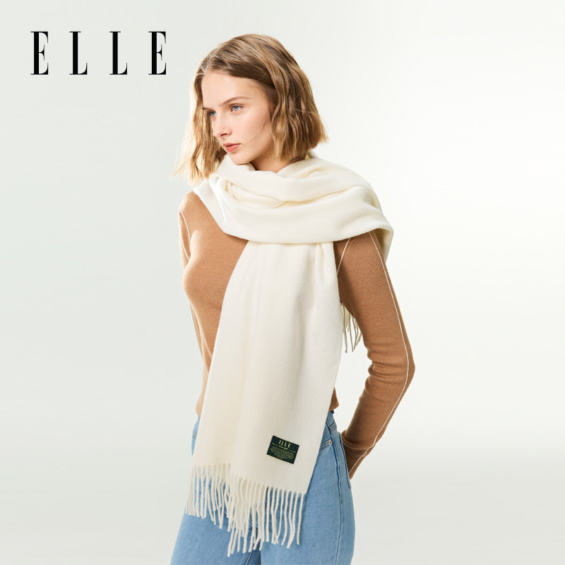 ELLE100%羊毛围巾女士大尺寸披肩/男士商务百搭围脖户外保暖时尚