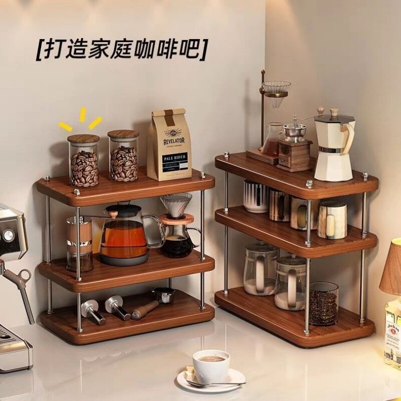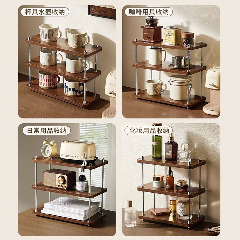 实木杯架桌面杯子收纳置物架水杯茶杯咖啡杯台面架子调料原木三层