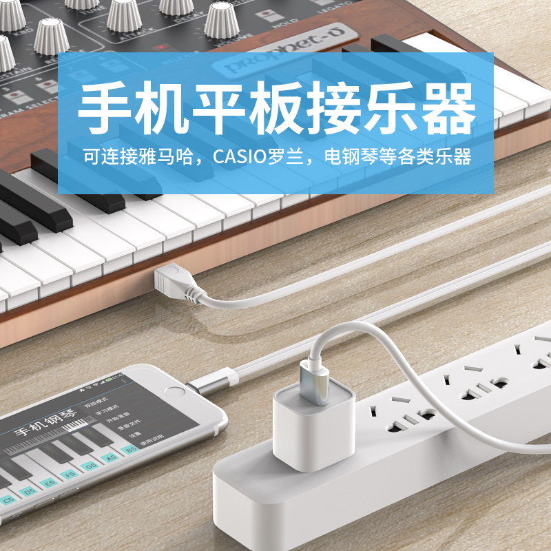 适用iphone充电OTG二合一转接头雅马哈电钢琴数据连接线iPad接电子鼓MIDI乐器键盘转换器声卡USB