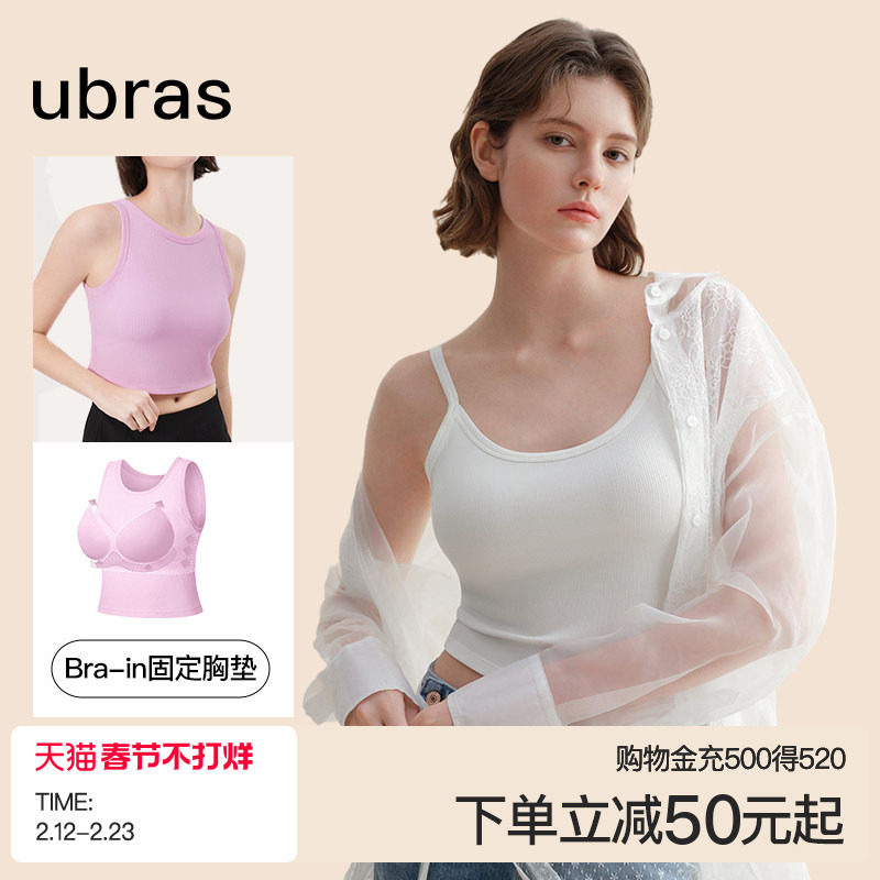 ubras罗纹辣妹带杯显瘦百搭吊带背心女内搭美背泰式小吊带白色