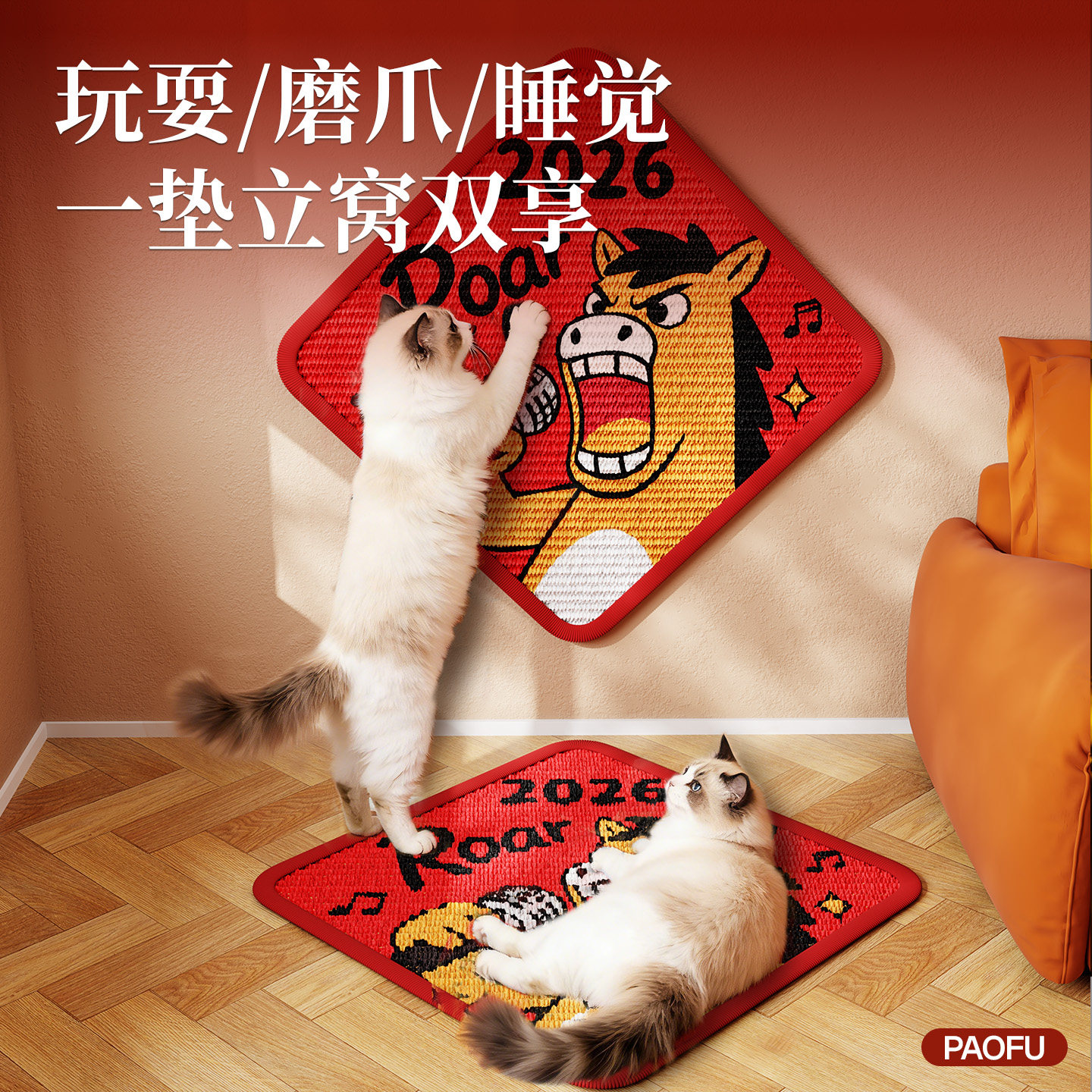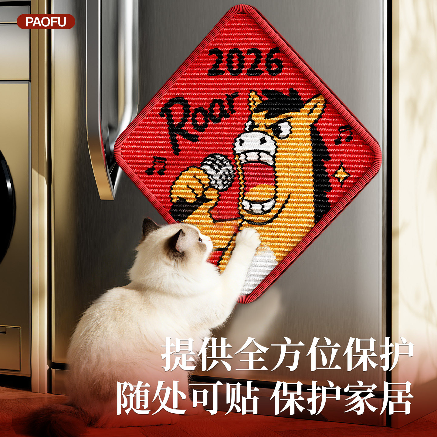 剑麻猫抓板天然剑麻猫抓板贴墙耐磨耐抓新春卡通猫爪垫宠物用品