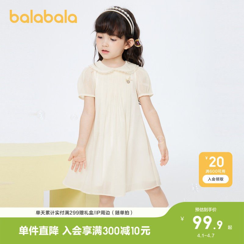 巴拉巴拉童装儿童女童裙子新款夏装娃娃领压褶A字小童宝宝连衣裙