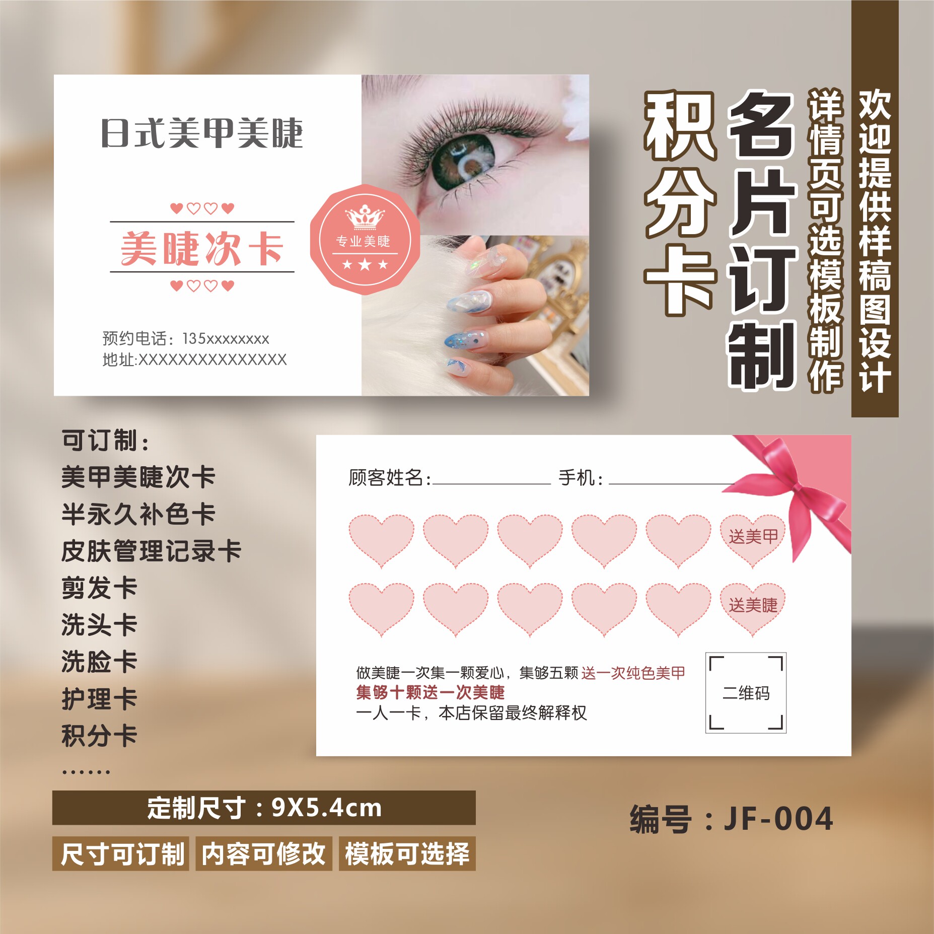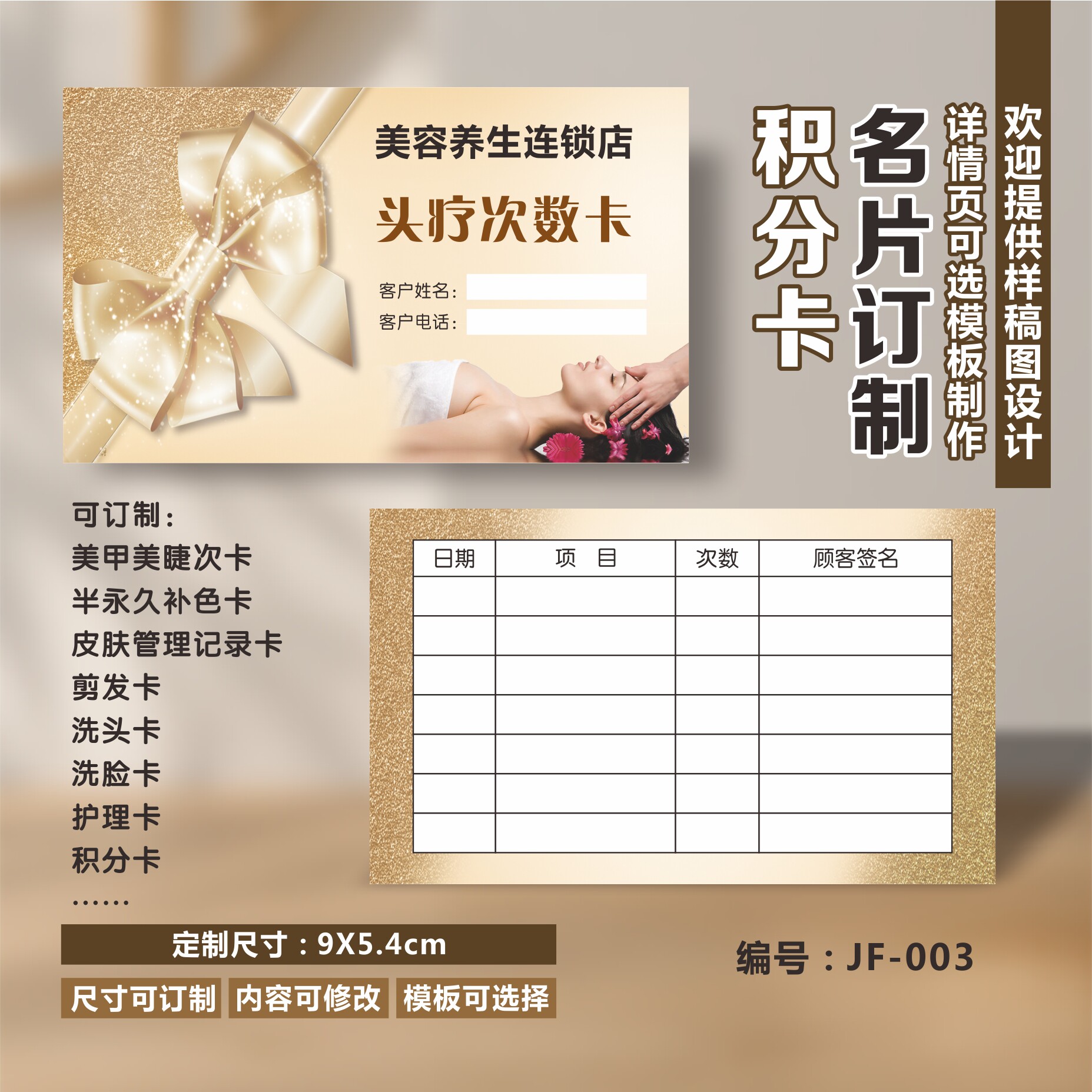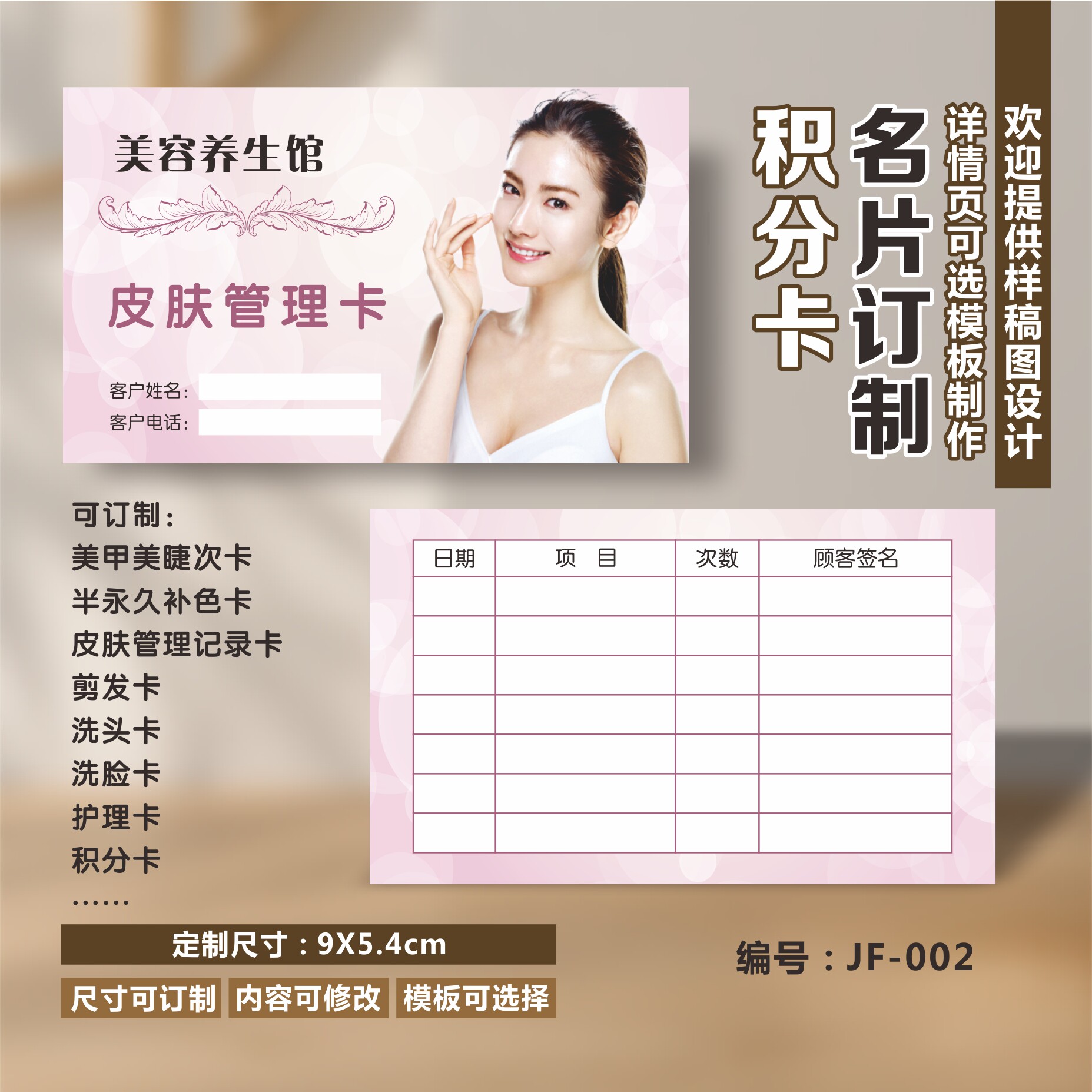 美甲美睫积分卡拓客洗脸卡美容次卡护肤头疗记录卡订做设计定制作