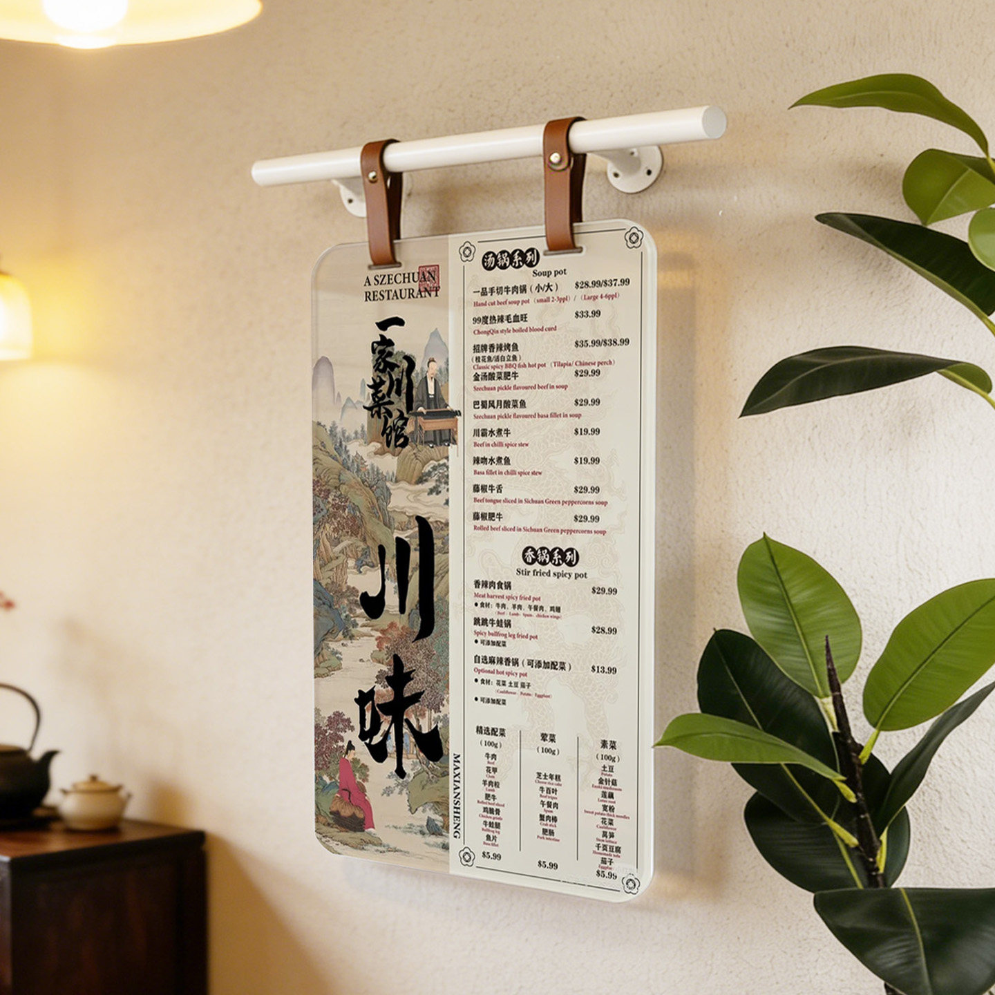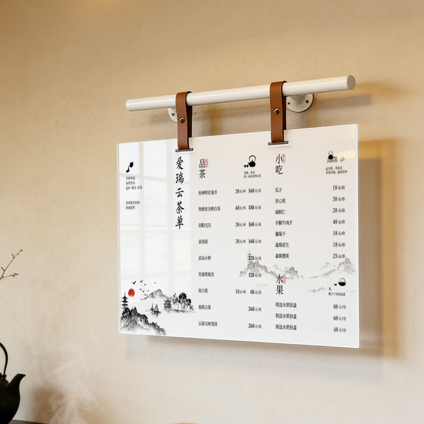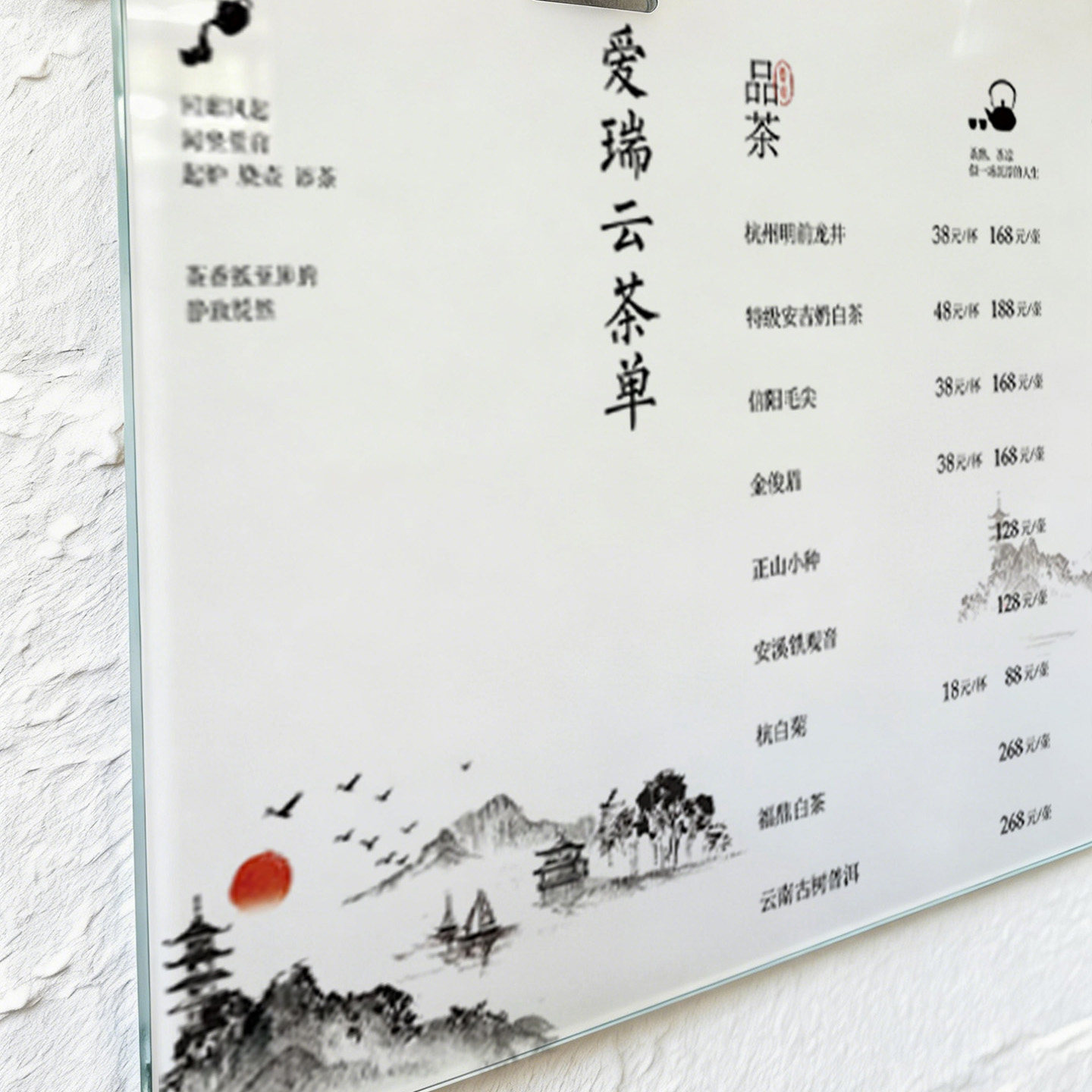 中式茶室茶水单价格表展示牌设计制作美容院美甲美睫养生足浴会员充值国潮风菜单高档悬挂墙亚克力价目表定制