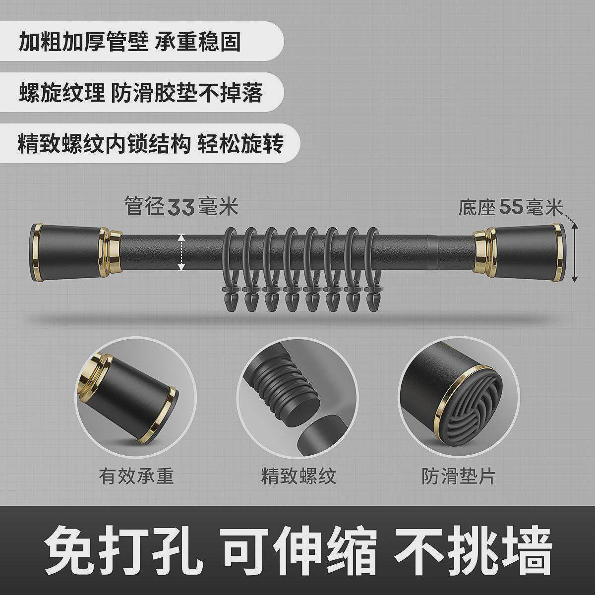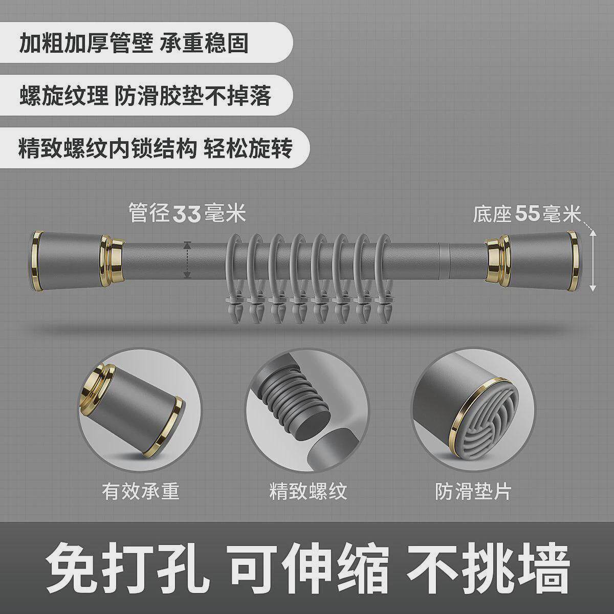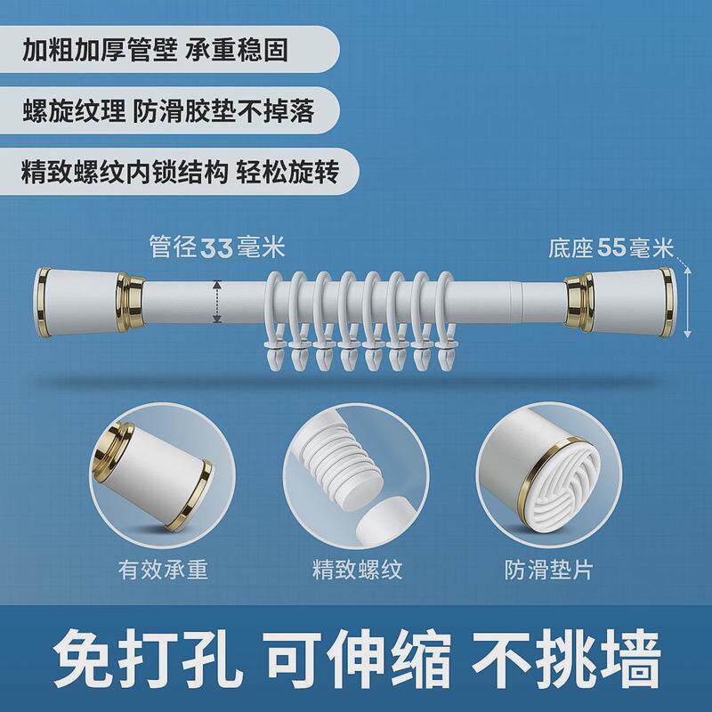 窗帘杆免打孔伸缩杆浴帘杆支架升缩撑杆晾衣杆阳台单杆罗马杆承重