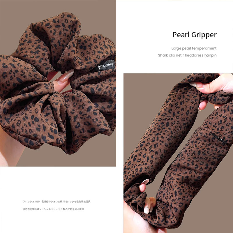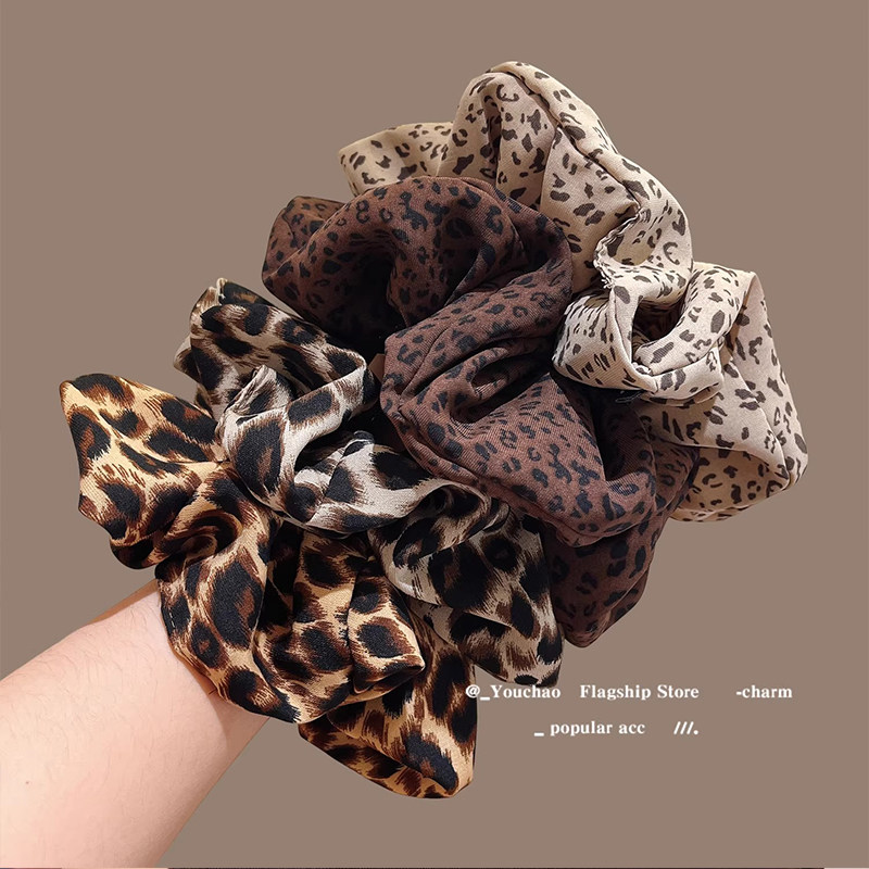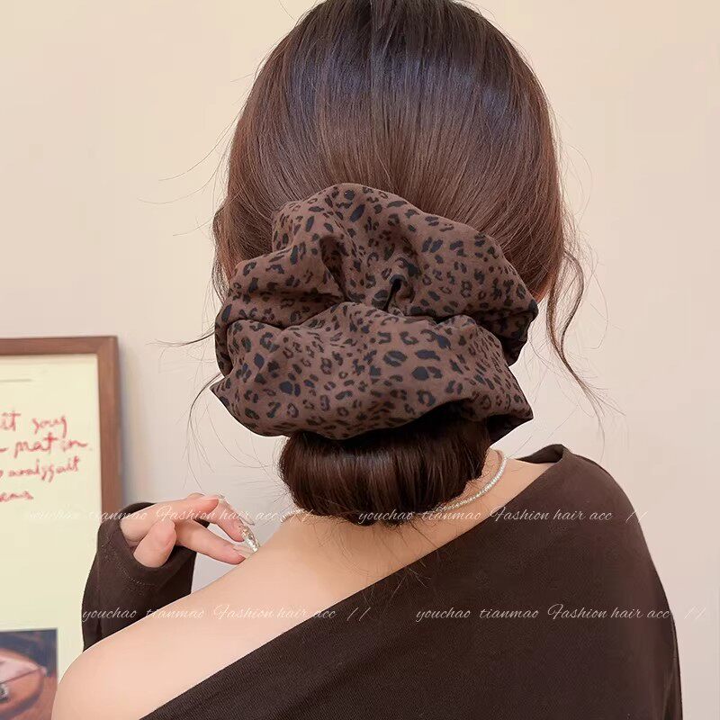 秋冬慵懒随意气质超大号豹纹大肠发圈高级感低丸子头扎头发头绳女