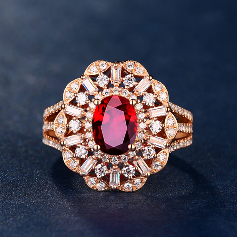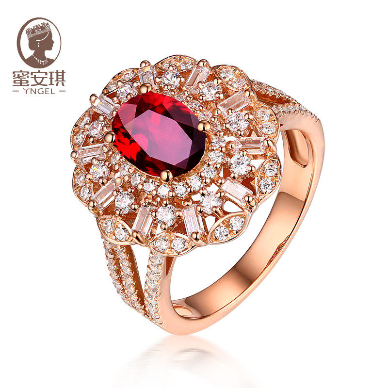 Yngel/蜜安琪0.8~1.0克拉天然红宝石戒指18K金镶嵌钻戒彩宝定制