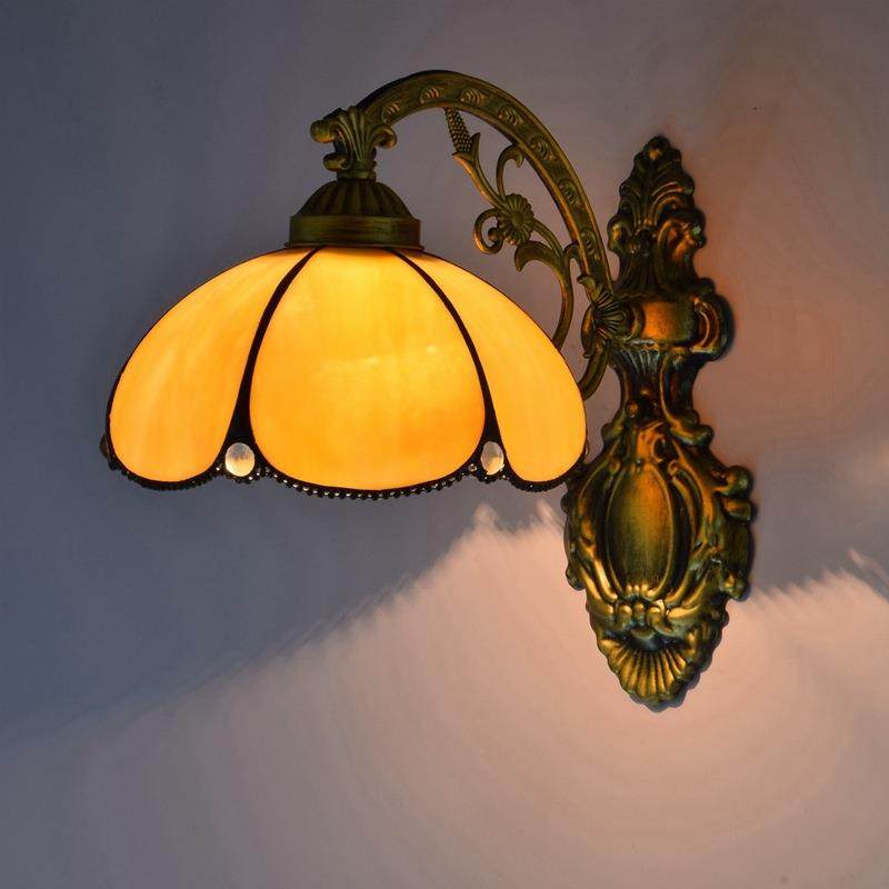 欧琈蒂凡尼彩色玻璃复古镜前灯简约床头过道太阳花单头琉璃壁灯