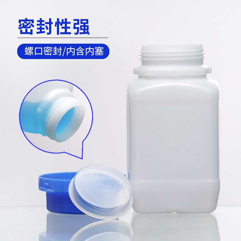 垒固塑料(HDPE)蓝盖方瓶 加厚大口保险盖密封固体粉末试剂瓶样品瓶包装瓶60 100 250 500 1000 1500ml