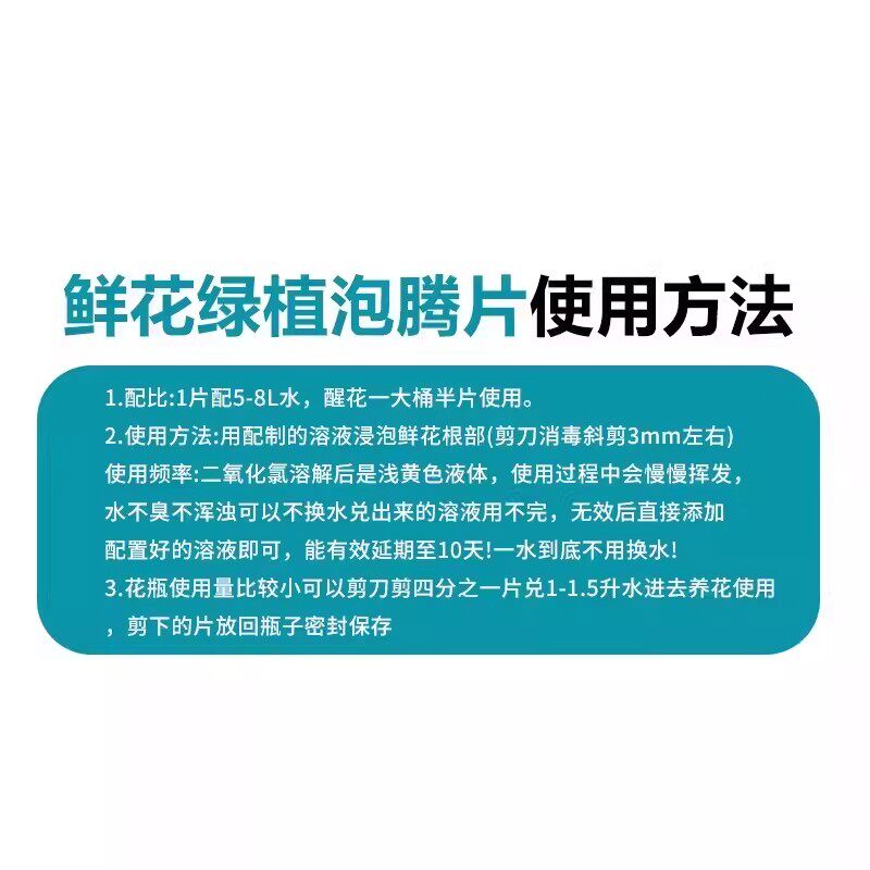 二氧化氯鲜花泡腾片幼儿园养花绿植专用杀菌片插花卉切花保鲜剂